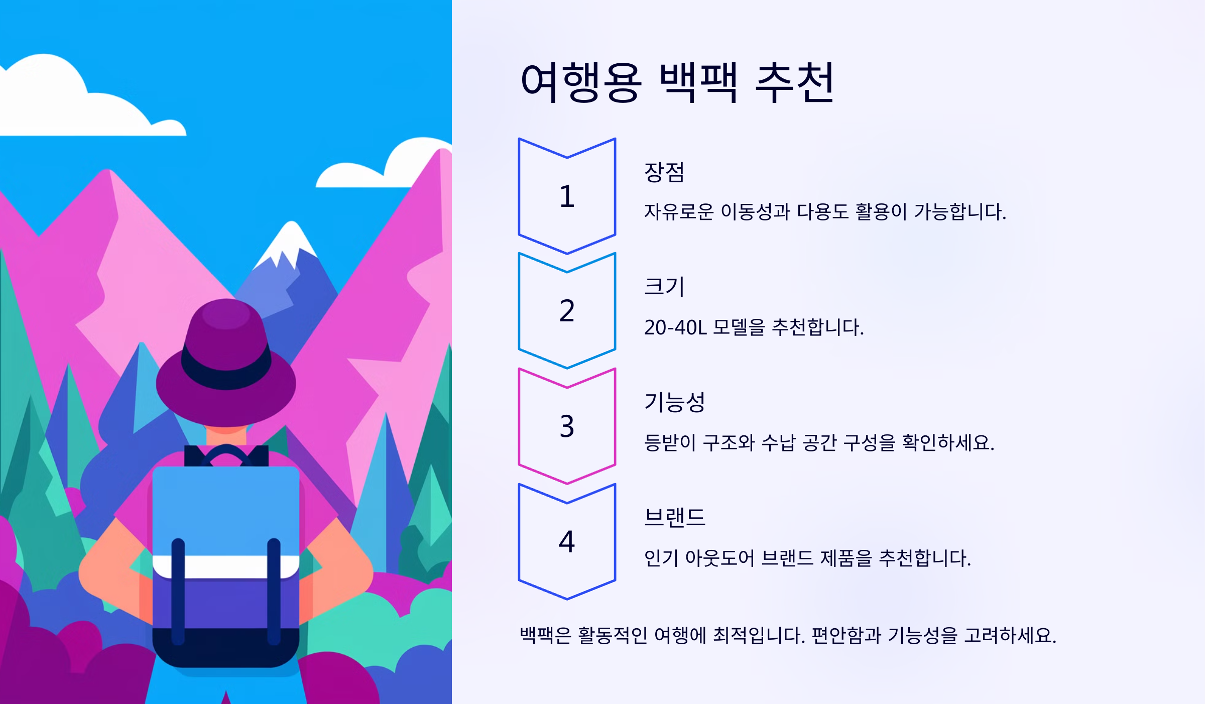 - ✔ **가벼울수록 좋음**: 여행 중 무거운 가방을 들고 다니면 피로가 쌓여요.