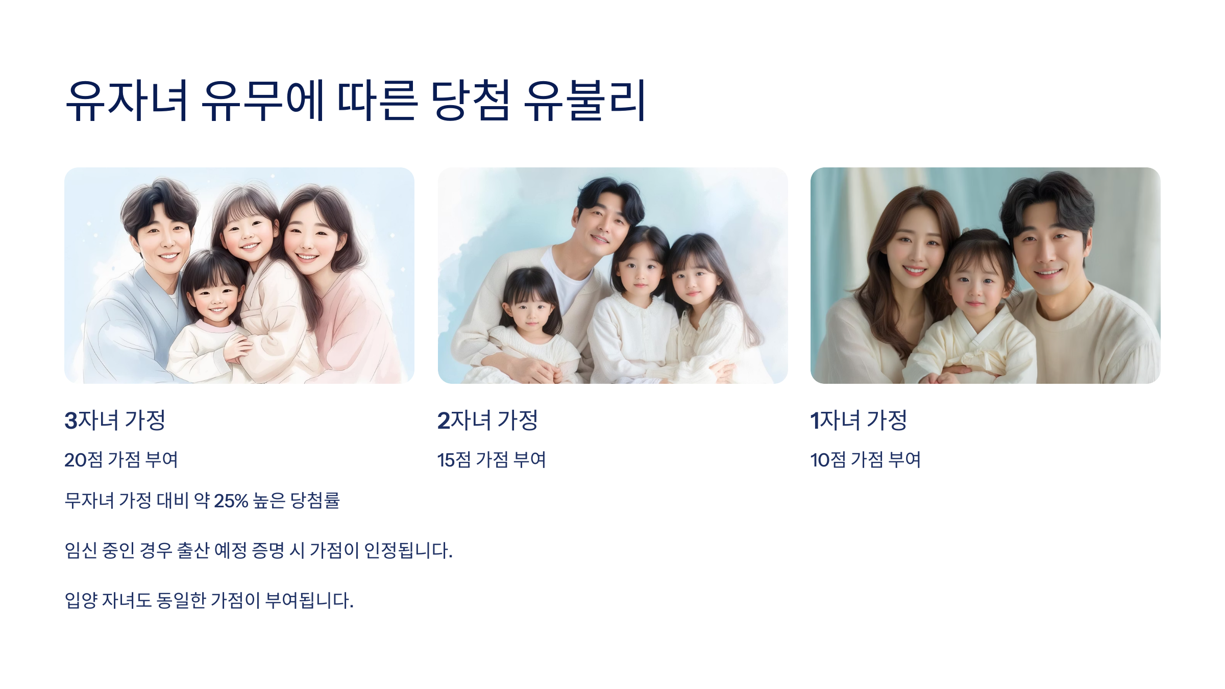 | 자녀 수 | 당첨 점수 영향 | 유리한 유형 | 특이사항 |