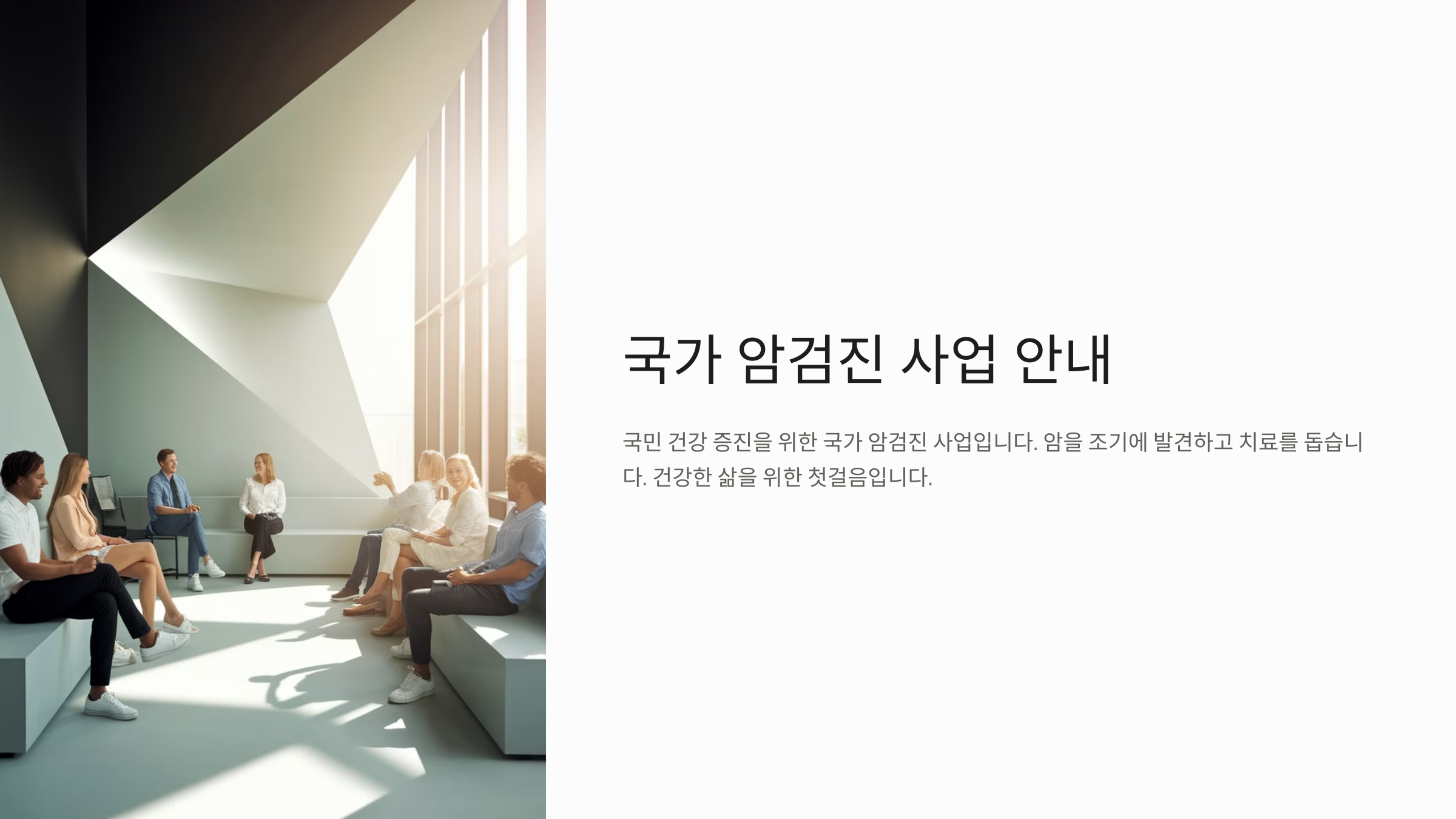 국가 암검진 사업은 국민건강보험공단에서 주관하는 프로그램으로, 우리나라 국민이 일정 연령이 되면 무료 또는 저비용으로 암 검진을 받을 수 있도록 지원하는 제도예요.