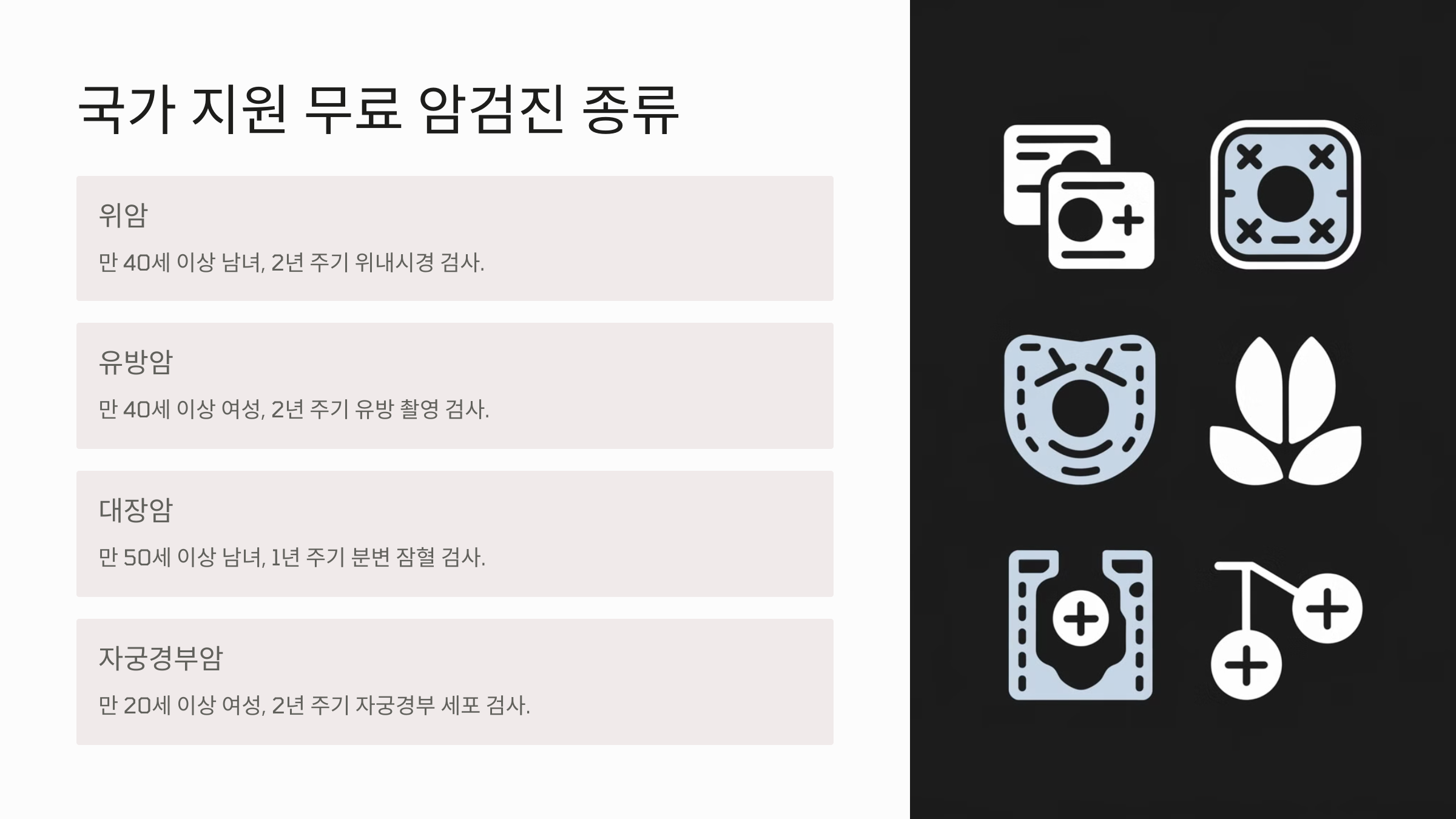 우리나라에서는 암을 조기에 발견하고 치료하기 위해 국가에서 무료 암검진을 지원하고 있어요. 2025년에는 기존 대상자뿐만 아니라 추가로 지원받을 수 있는 대상이 확대되면서 더 많은 사람들이 혜택을 받을 수 있게 되었어요.