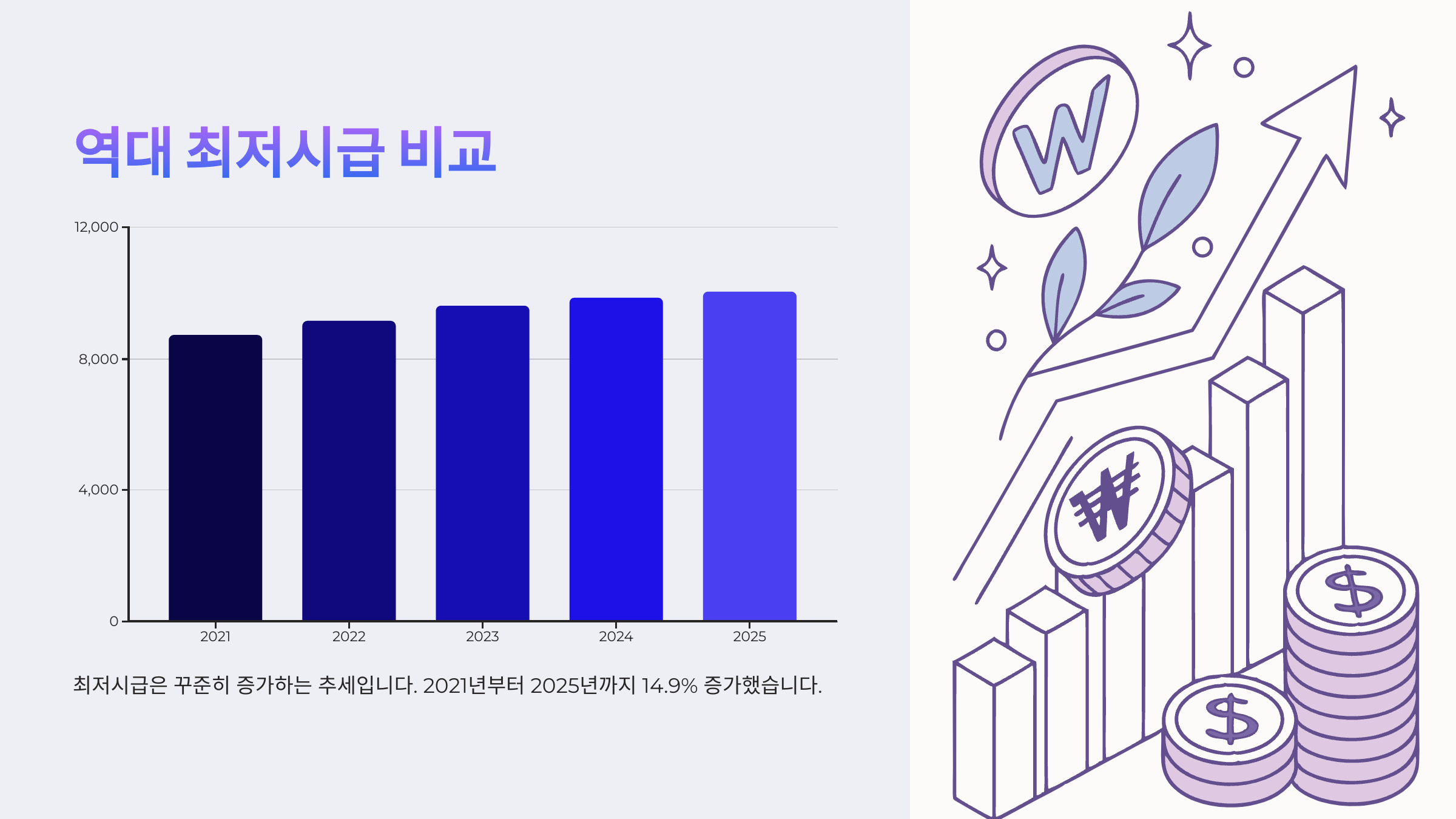 이제 다음 섹션에서는 역대 최저시급과의 비교를 통해 2025년 수치가 어떤 의미를 가지는지 더 입체적으로 분석해볼게요! 📈