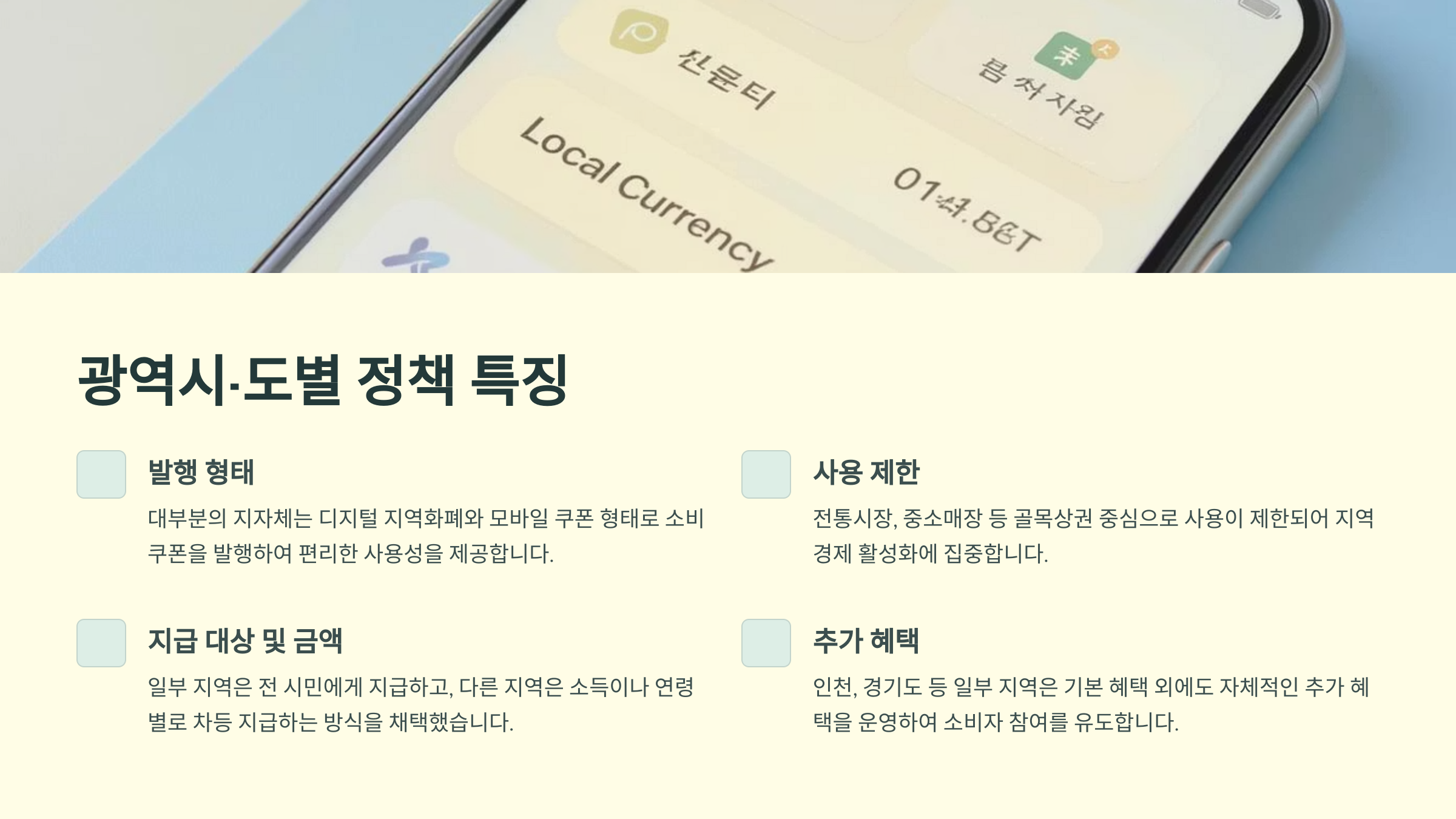 | 지역 | 지급 방식 | 혜택 비율 | 특이 사항 |
