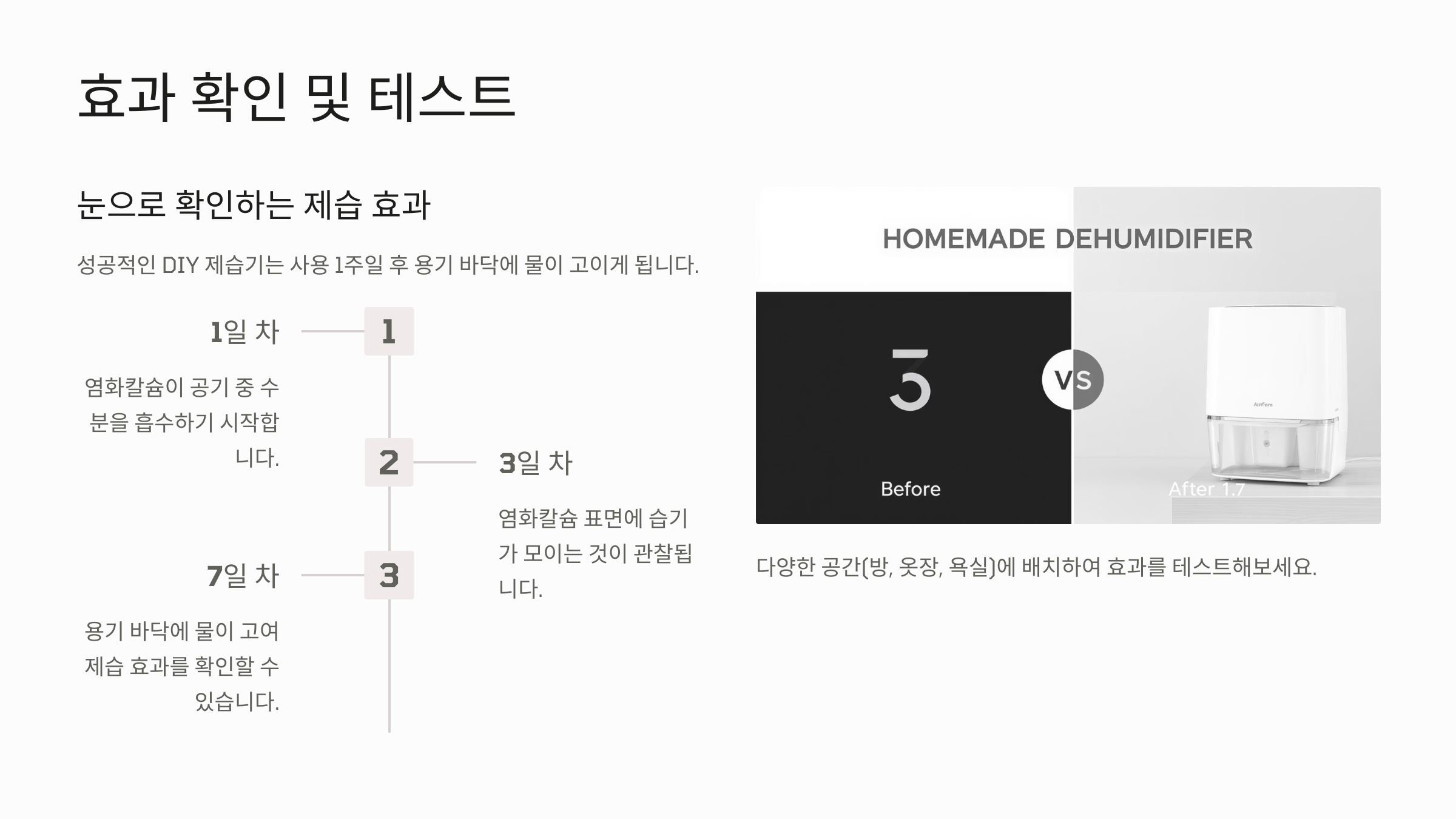 이렇게 간단하게 셀프 제습기 만들기는 완료됐어요! 그럼 과연 이 제습기가 얼마나 효과가 있을까요? 직접 테스트해본 결과를 공유해볼게요 💧