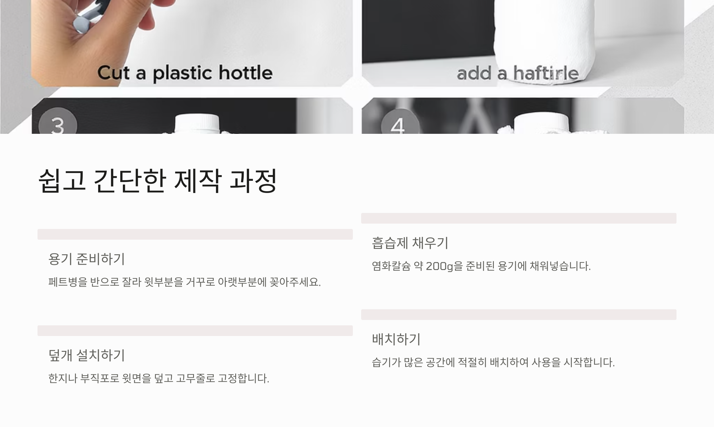 이제 재료 준비는 끝났어요. 다음은 가장 중요한 셀프 제습기 만드는 과정이에요! 정말 간단하지만 주의할 점도 있으니 꼼꼼히 따라와 주세요 🙌