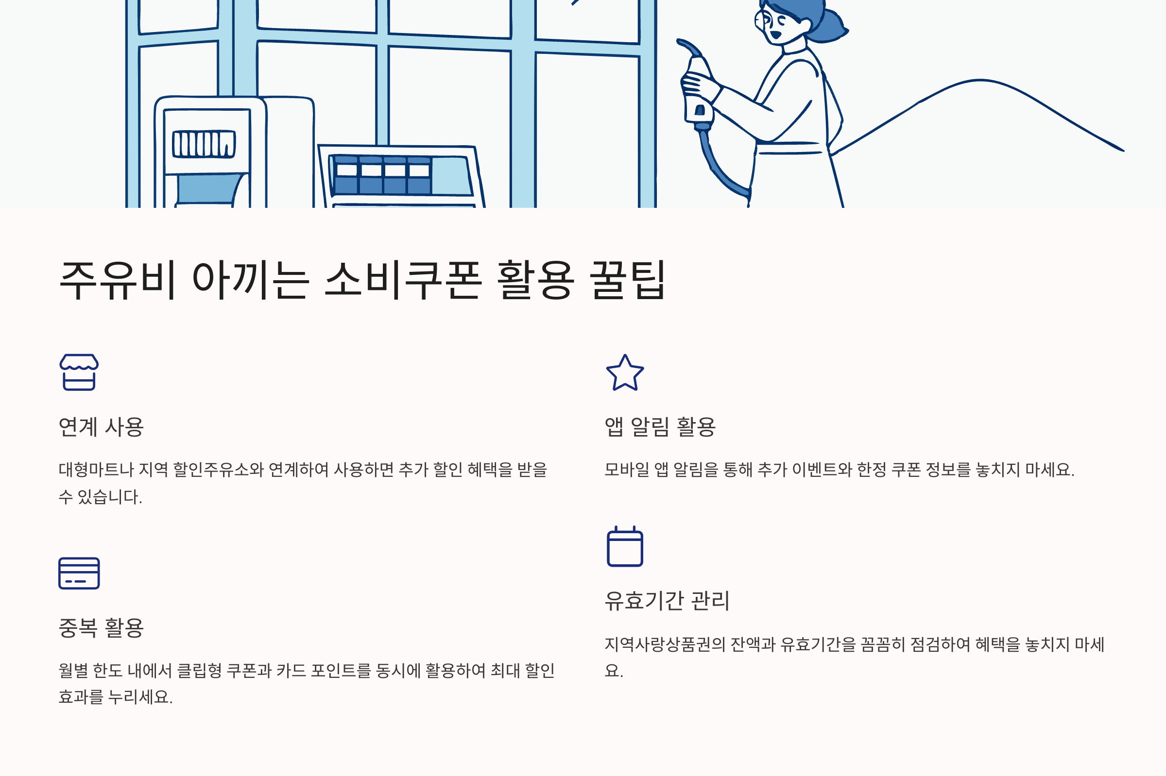 2025년에는 기름값 부담을 덜어주는 소비쿠폰 혜택이 더욱 다양해졌어요. 주유에 특화된 쿠폰은 따로 없지만, 카드사와 연계된 소비쿠폰 이벤트나 지역화폐 충전 이벤트를 통해 주유비까지 커버할 수 있게 구성됐답니다.