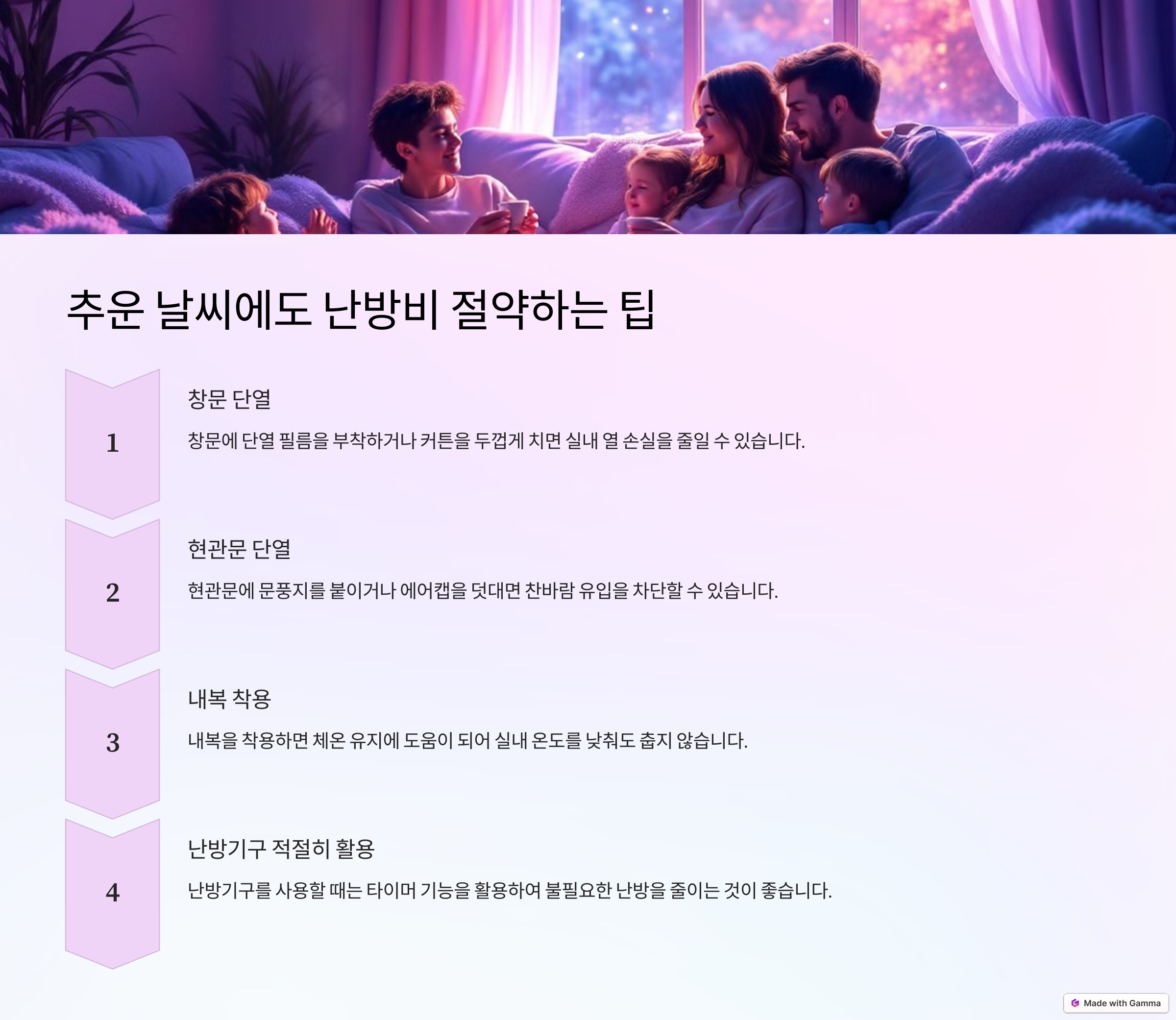 작은 습관의 변화가 난방비를 크게 줄여줄 거예요. 따뜻하고 알뜰한 겨울 보내세요! 🔥❄️