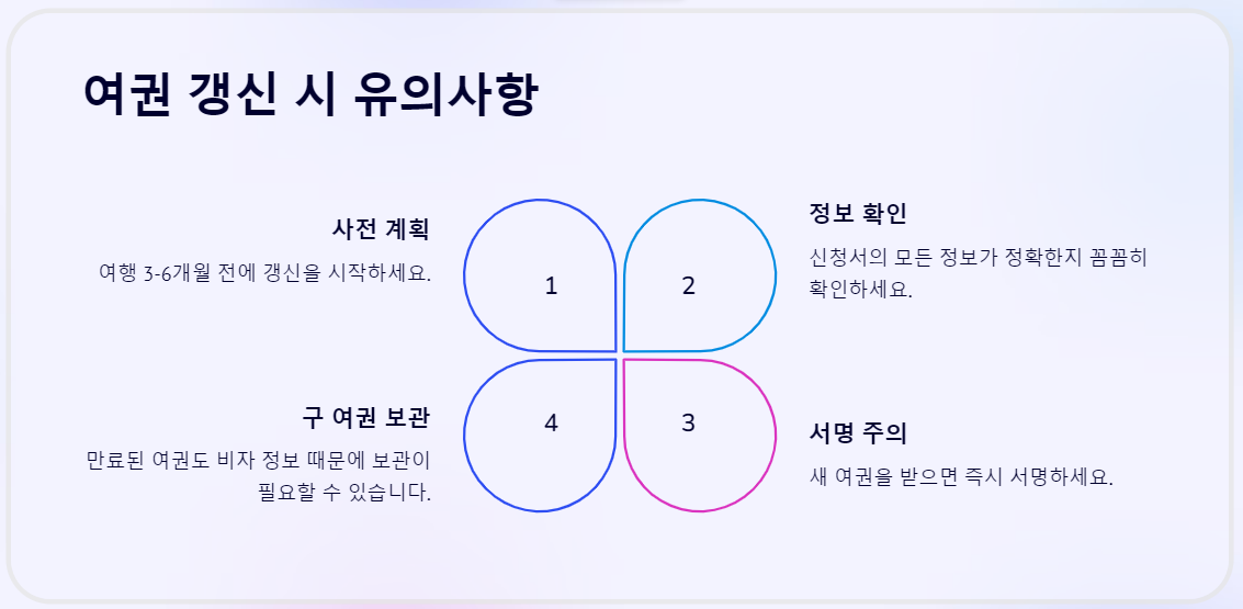 여권 갱신을 할 때 몇 가지 주의해야 할 사항이 있어요. 실수하지 않도록 꼭 확인하세요!