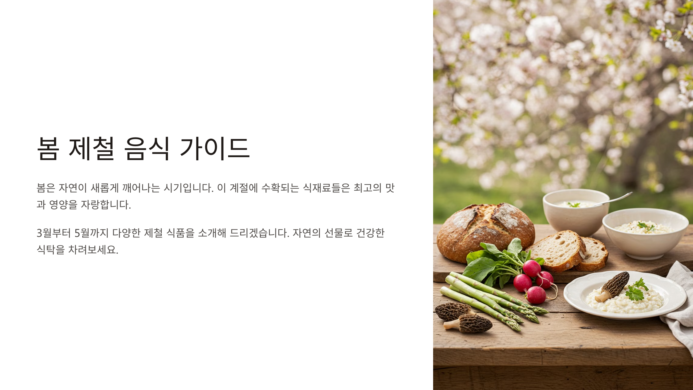 이번 봄에는 제철 음식으로 맛있고 건강한 식사를 즐겨보세요! 😊