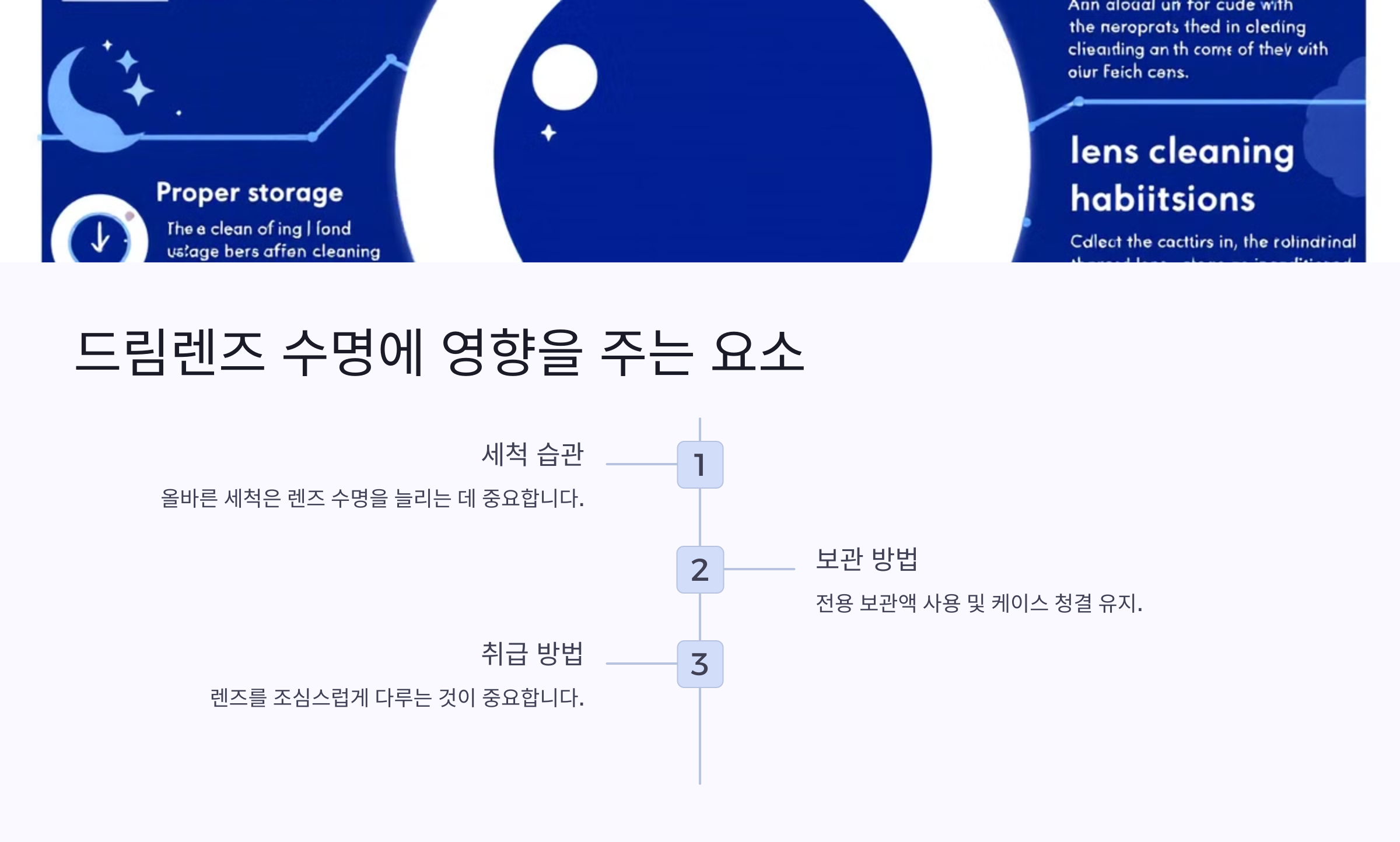 이제 각 섹션에서 드림렌즈 사용 기간과 관리 방법에 대해 자세히 알아볼게요! 👇