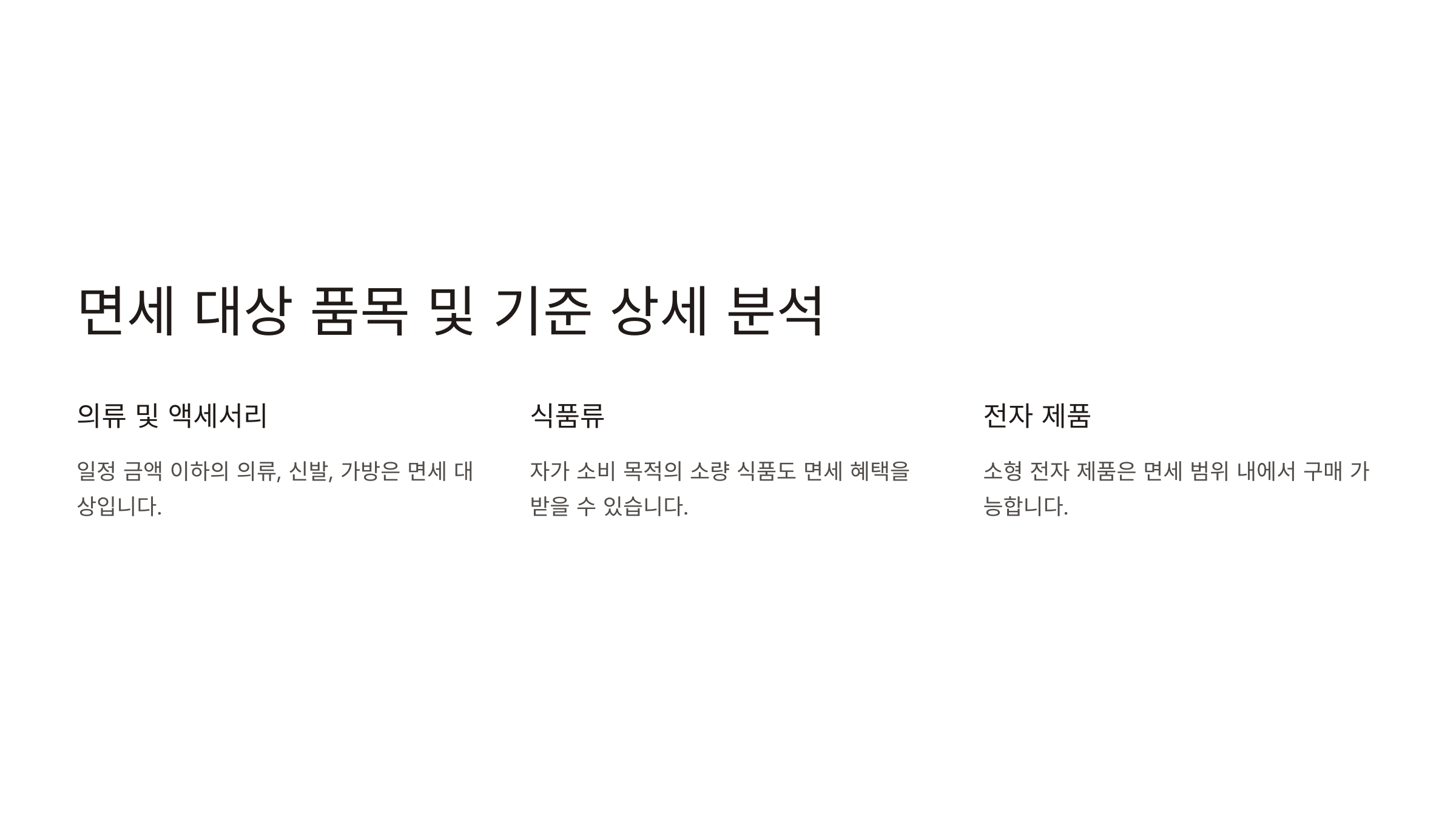 면세 한도를 초과하는 경우, 상품에 따라 관세와 부가세가 부과될 수 있으니 미리 계산해보는 것이 좋아요. 다음 섹션에서는 면세 대상 품목과 과세 기준을 자세히 살펴볼게요.