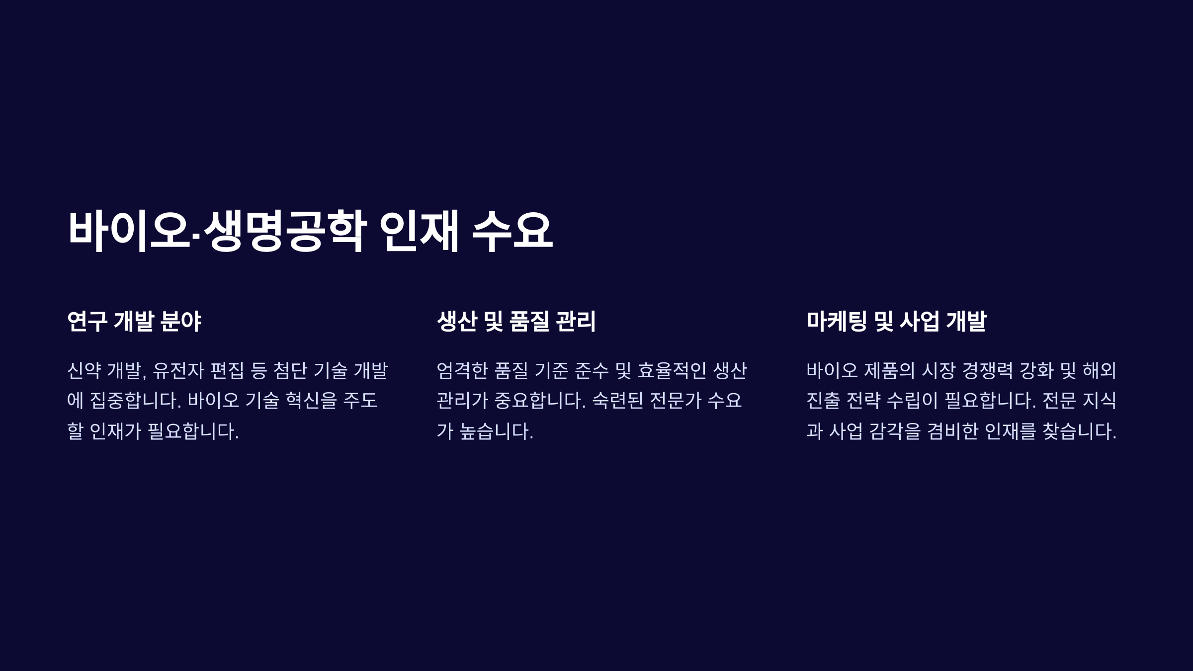 | 연도 | 바이오 인력 수요 증가율 | 주요 산업 |