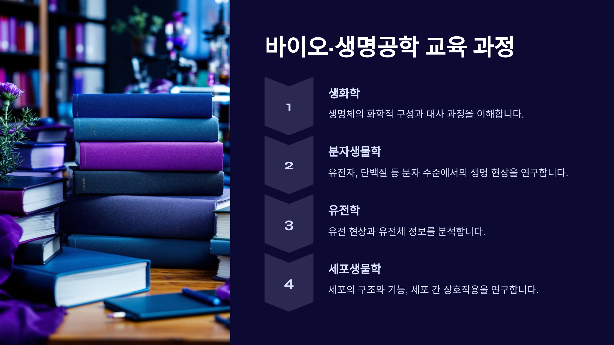 바이오·생명공학은 실습과 연구가 필수적인 전공이기 때문에, 실험실 경험이 많을수록 취업에도 유리해요! 🔬