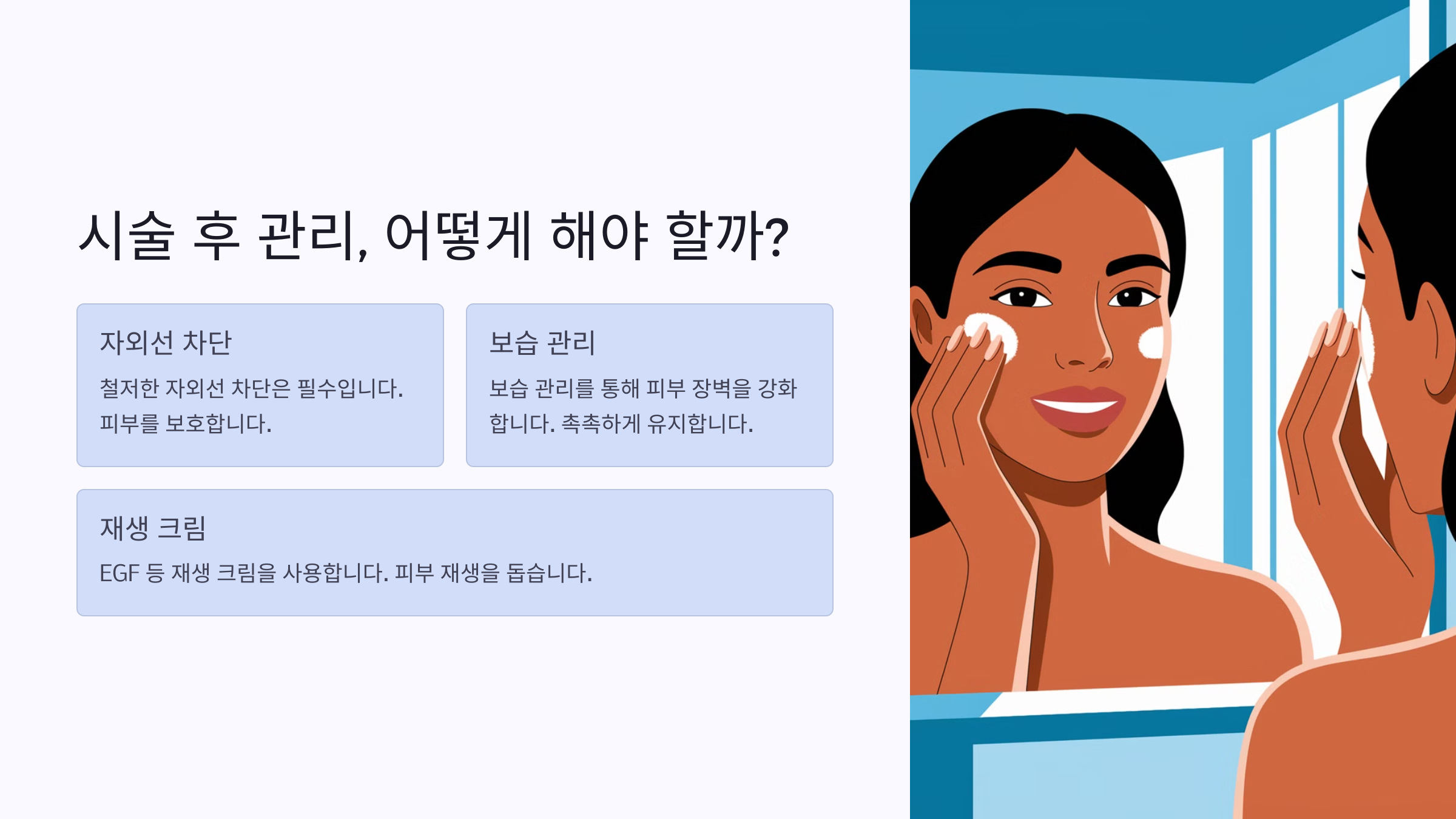 이제 시술 후 피부를 빠르게 회복하는 방법을 알아볼까요? 👇