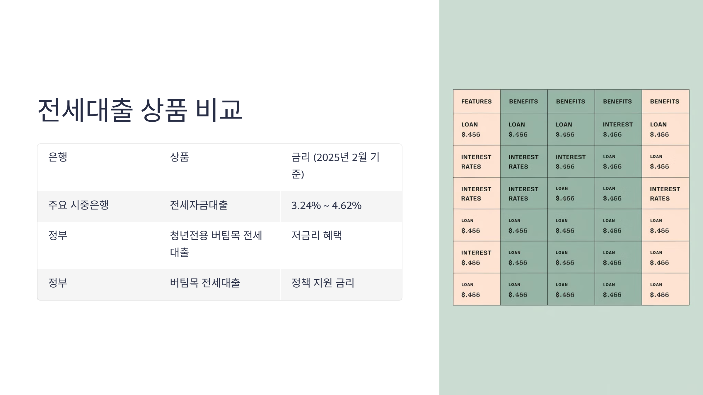 전세 자금 대출을 받으려면 어떤 은행에서 어떤 상품을 제공하는지 비교하는 것이 중요해요. 정부 지원 대출과 일반 은행 대출 중 어느 것이 나에게 유리한지 살펴볼까요? 🤔