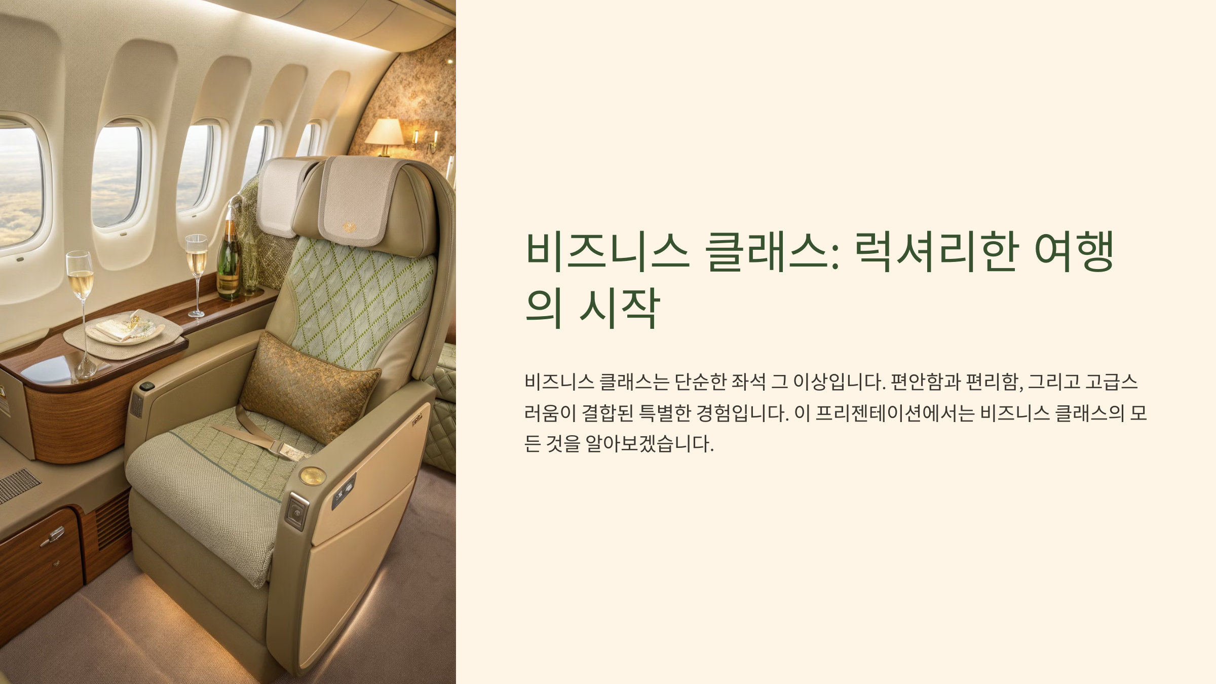 - ✔ **고급 기내식 & 와인 제공**: 레스토랑 수준의 메뉴와 다양한 음료
