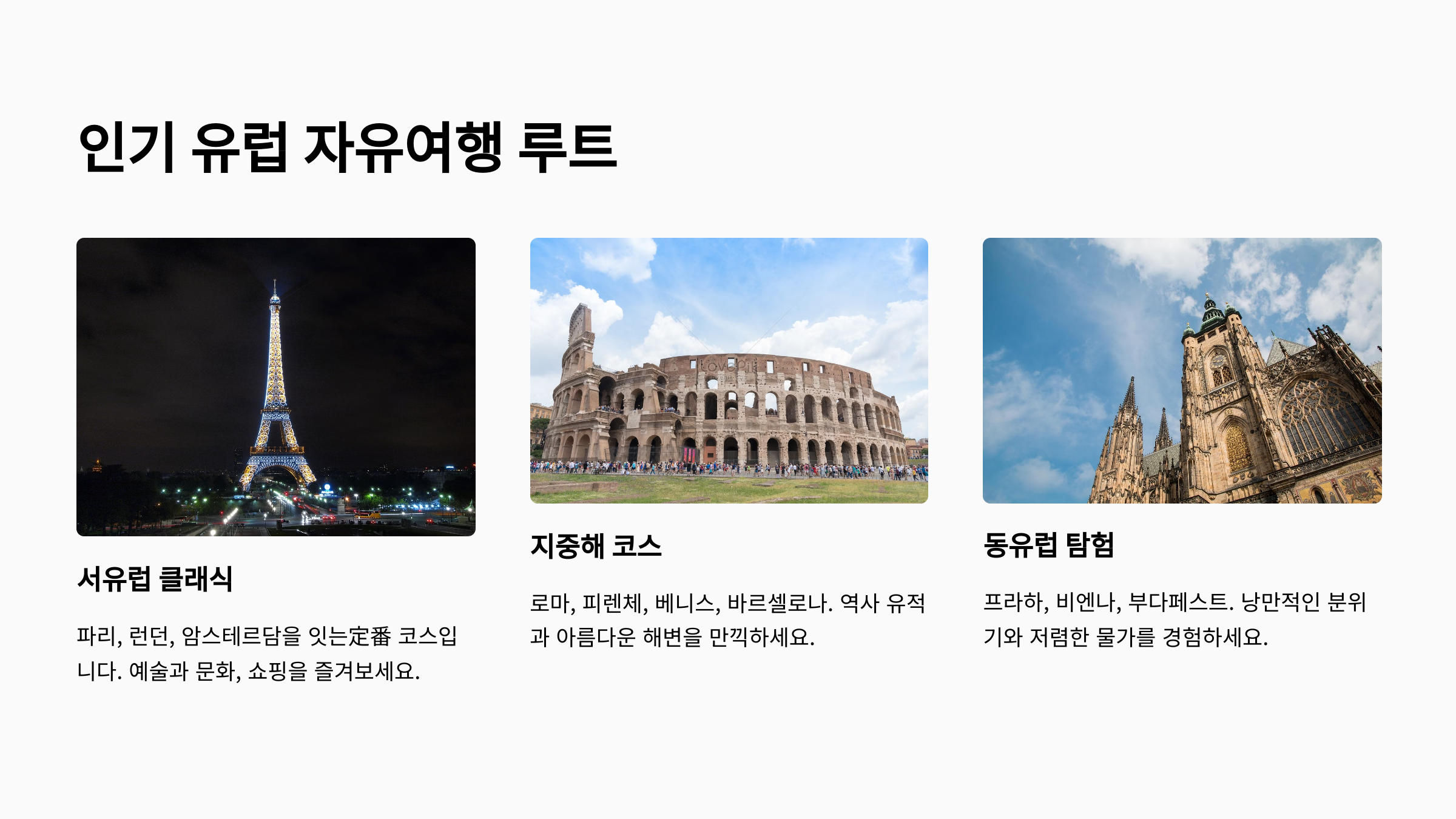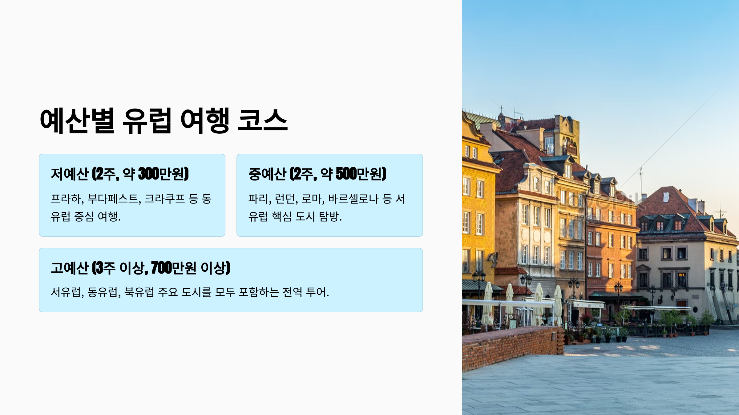 이제, 여행 예산에 맞춰 **가성비 좋은 유럽 여행 코스**도 살펴볼까요? 💰
