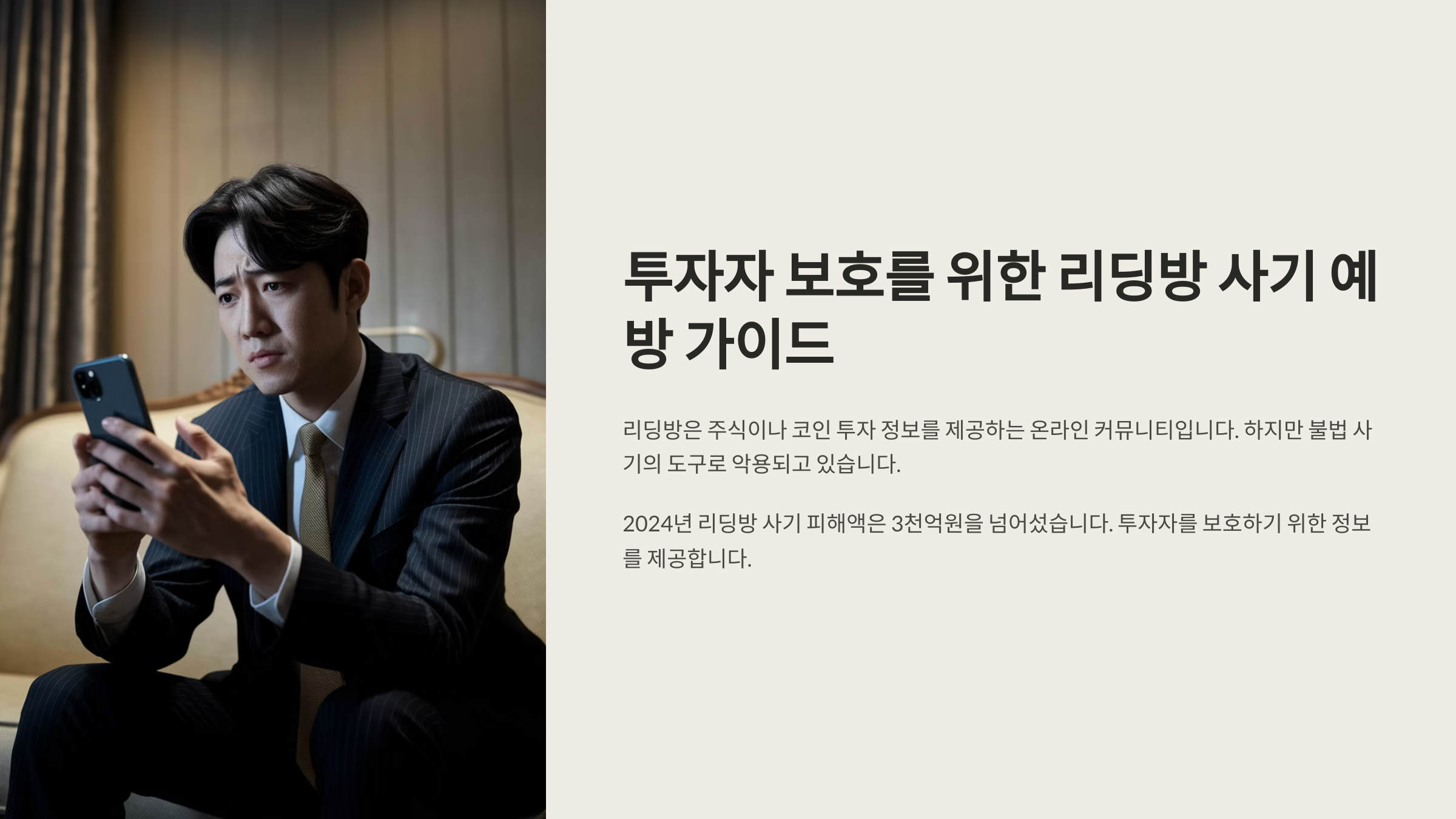 요즘 주식, 코인, 선물 투자에 관심을 가지는 사람들이 많아지면서 리딩방 사기가 기승을 부리고 있어요. 투자 초보자를 노려 ‘확실한 정보 제공’을 미끼로 돈을 뜯어내는 이들의 수법은 점점 더 교묘해지고 있죠.