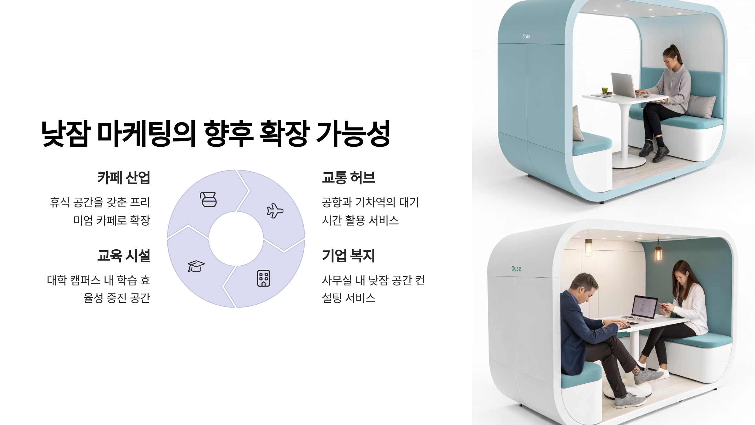 이런 낮잠형 마케팅은 국내뿐 아니라 해외에서도 활발하게 이뤄지고 있어요. 예를 들어, 일본의 ‘넷카페 캡슐룸’은 직장인들이 잠깐 눈을 붙이도록 마련된 공간이에요. 뉴욕의 ‘나프 팟(Nap Pod)’도 회사 근처에서 짧은 수면을 제공하는 공간이죠.