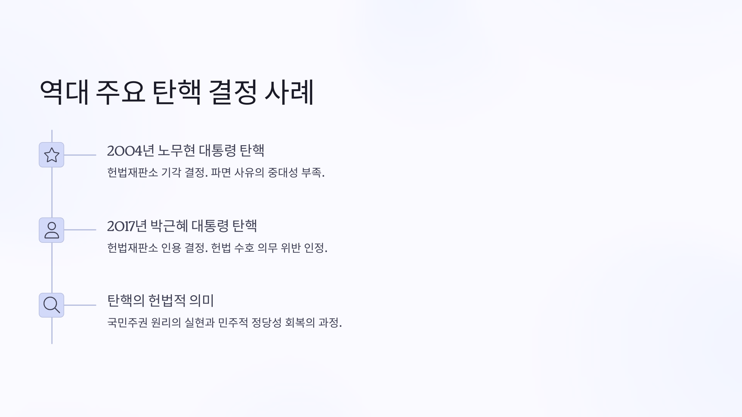 우리나라 헌정 역사에서 탄핵 심판은 그렇게 자주 있는 일은 아니지만, 한 번 있을 때마다 사회 전체를 뒤흔드는 사건이 되어왔어요. 그만큼 한 건 한 건이 역사적인 의미를 지니고 있답니다.