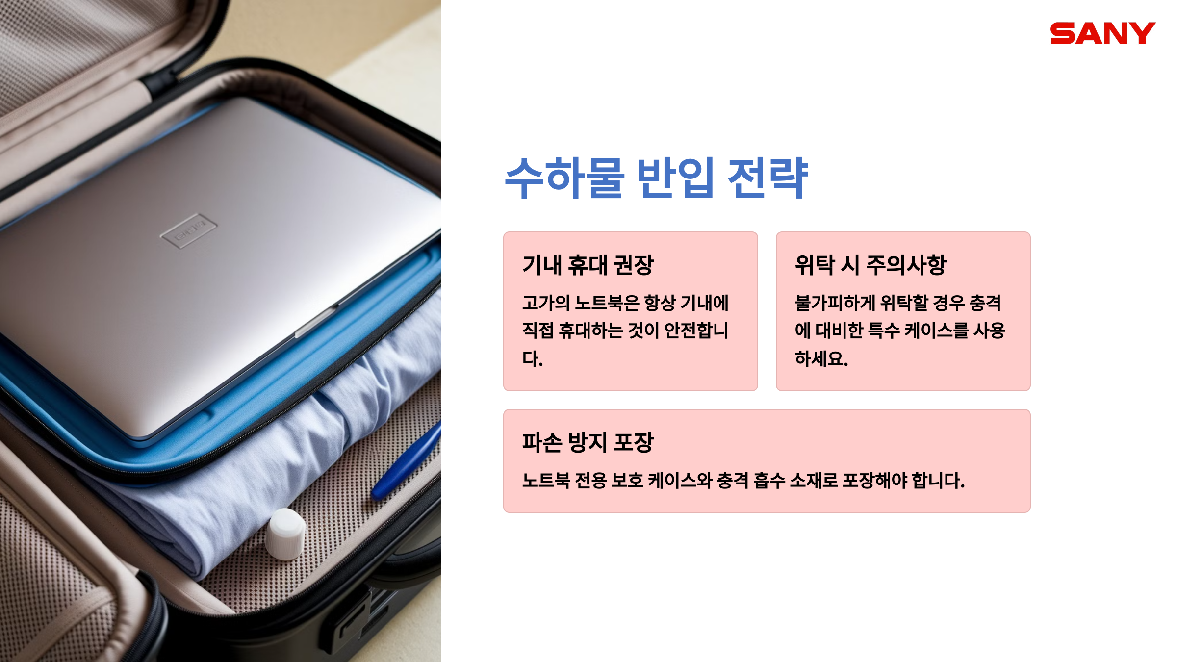 | 항공사 보상 한도 | 제한적 | 전자제품 별도 보상 안 될 수도 |