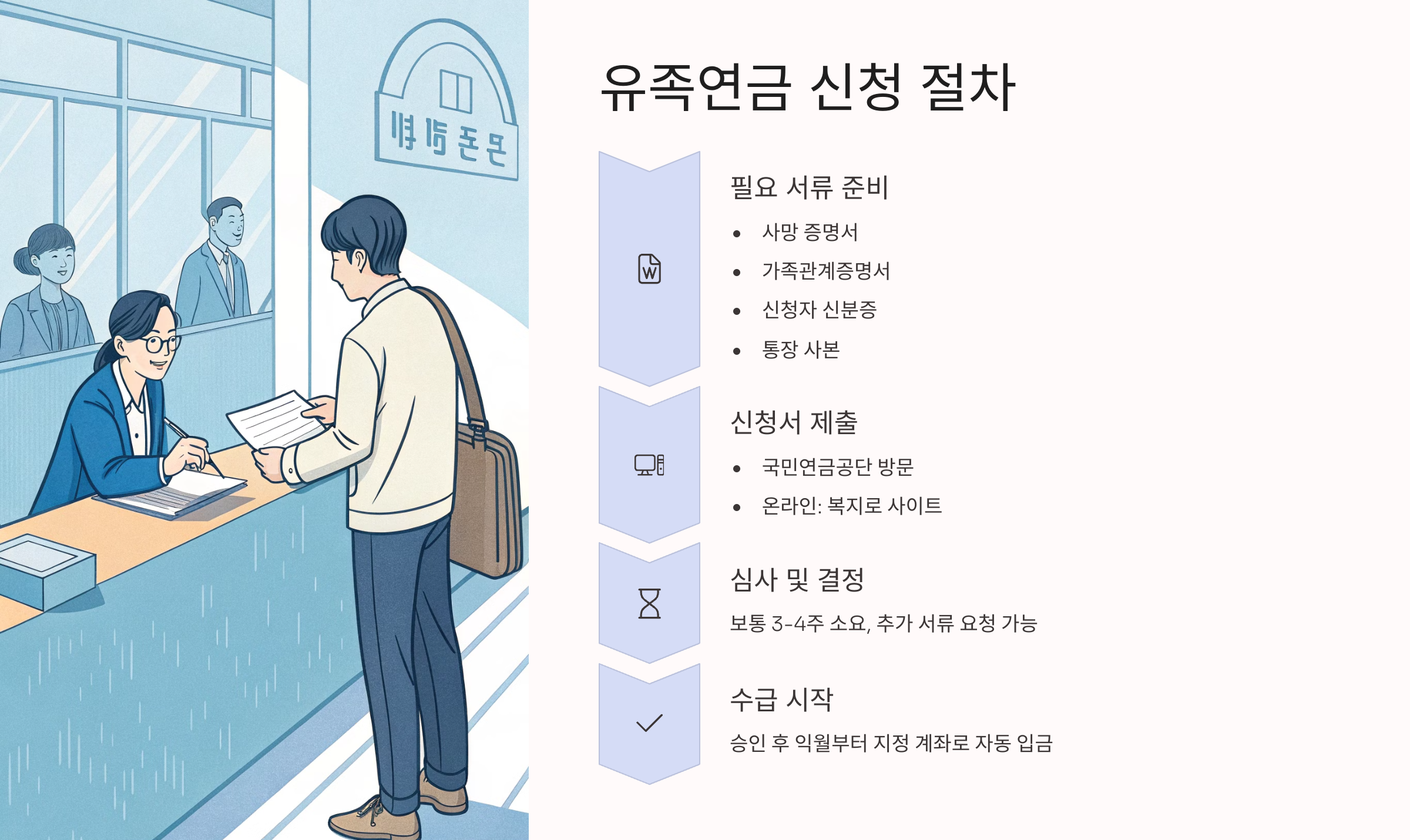 이제 "어떻게 신청하면 되나요?"라는 질문이 자연스럽게 떠오르죠. 유족연금은 조건만 맞는다고 자동으로 주어지지 않아요. 반드시 '본인이 직접 신청'해야 해요. 신청 절차와 준비물은 비교적 간단하지만, 누락 없이 잘 챙기는 게 핵심이에요.