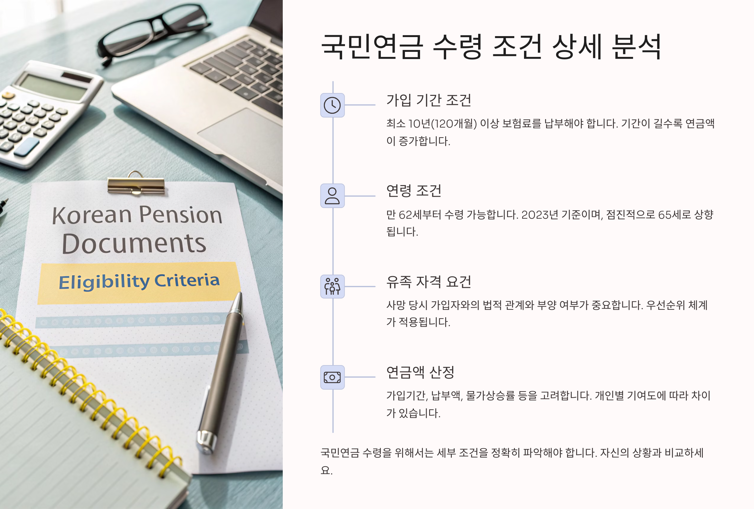 | 수급 조건 | 가입 기간 10년 이상 또는 연금 수급 중 사망 |