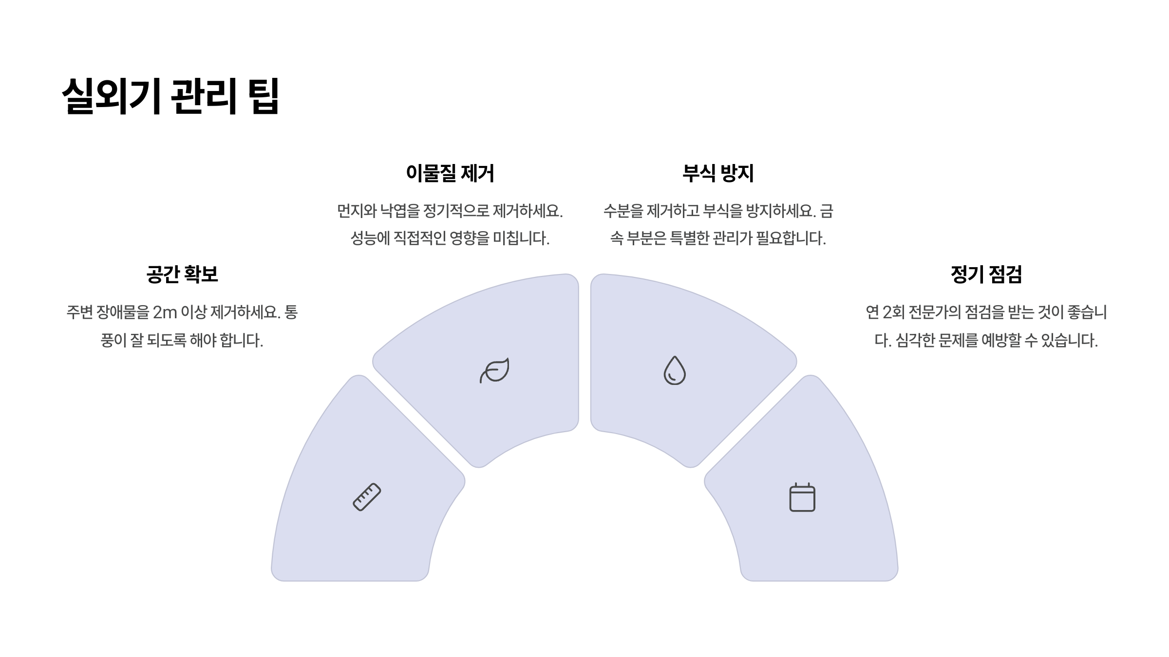 | 외부 오염 확인 | 먼지, 낙엽, 벌레 등 제거 | 2~3개월 |