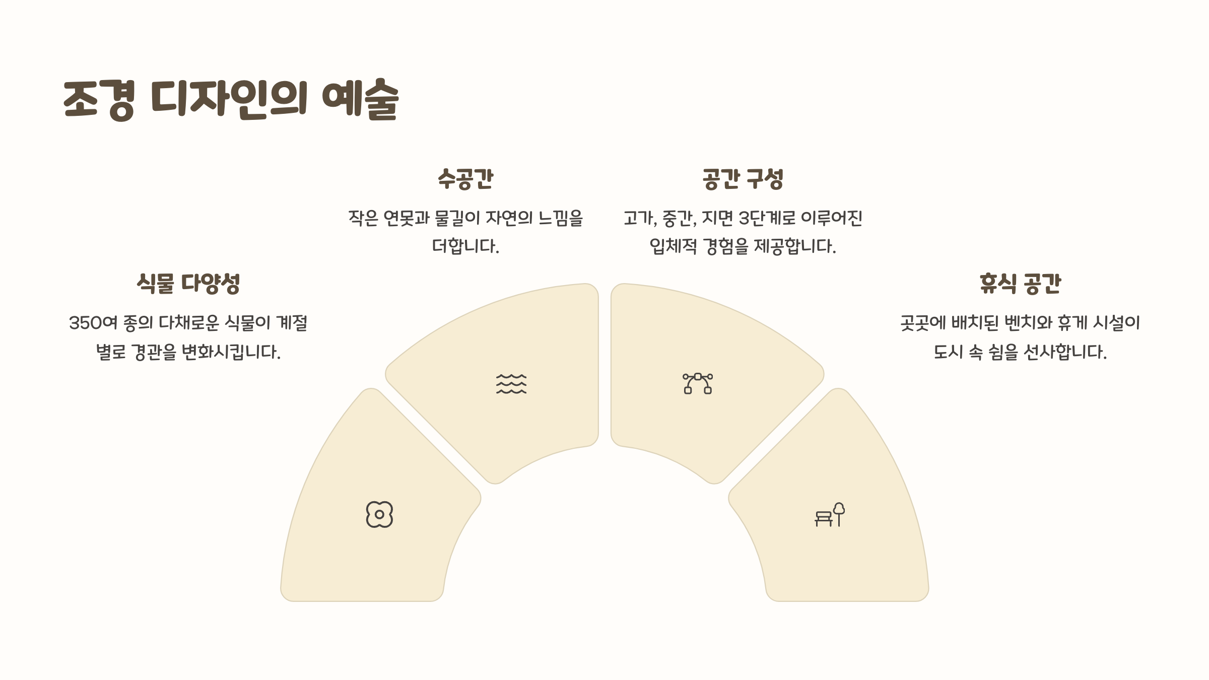 첫째, 아침 시간대를 추천해요. 사람들이 많지 않은 오전 시간에는 자연의 소리와 도시의 여백이 훨씬 또렷하게 들려요. 햇살이 고가 철로 사이로 스며들고, 꽃과 나무에 맺힌 이슬이 반짝이는 풍경은 정말 힐링 그 자체예요.