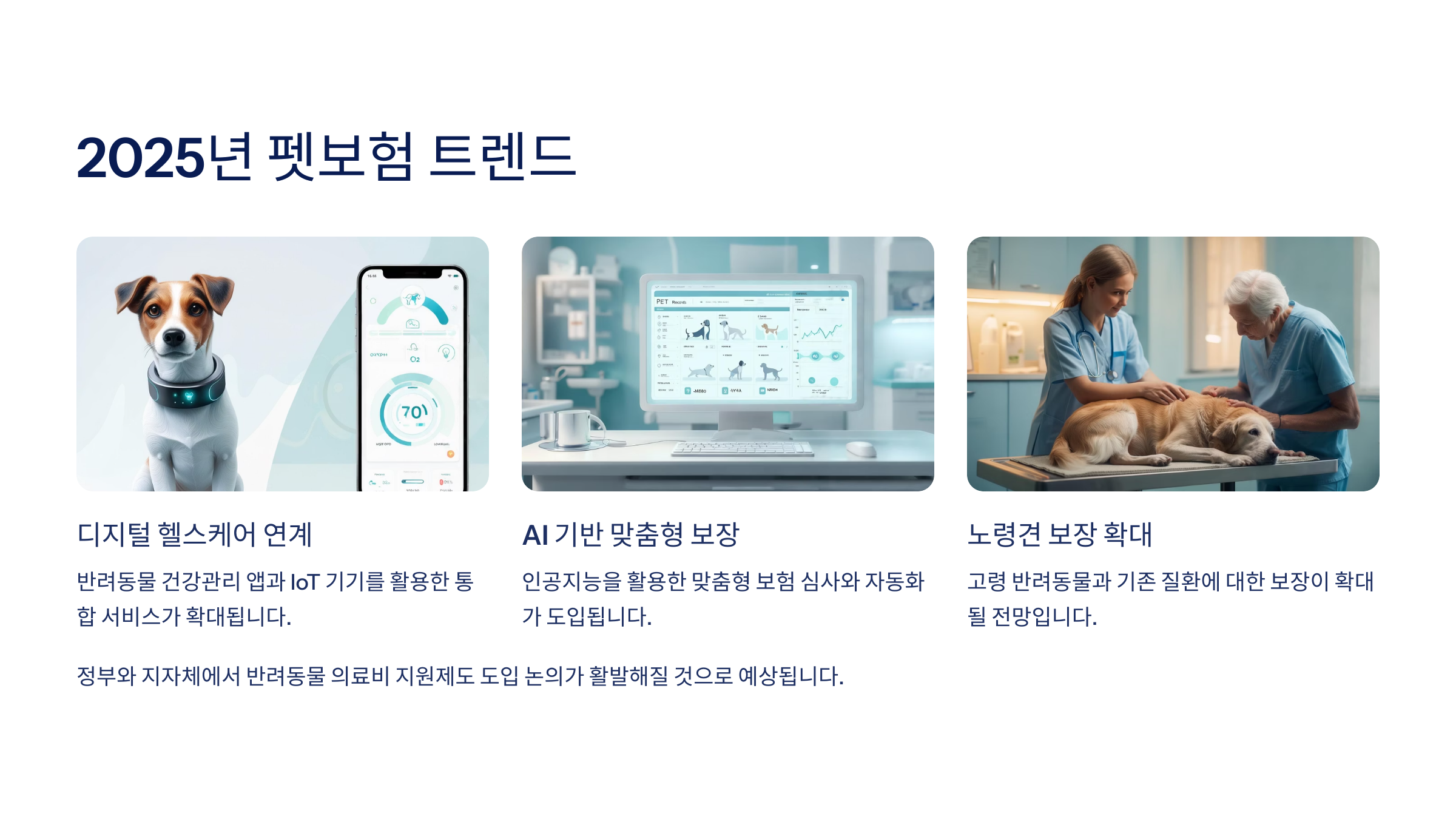 2025년 현재, 펫보험은 단순한 ‘의료비 보장’에서 벗어나 다양한 서비스와 기술이 결합된 새로운 형태로 진화하고 있어요. 보호자의 니즈에 맞춰 더 똑똑하고 정교한 방향으로 가고 있죠!