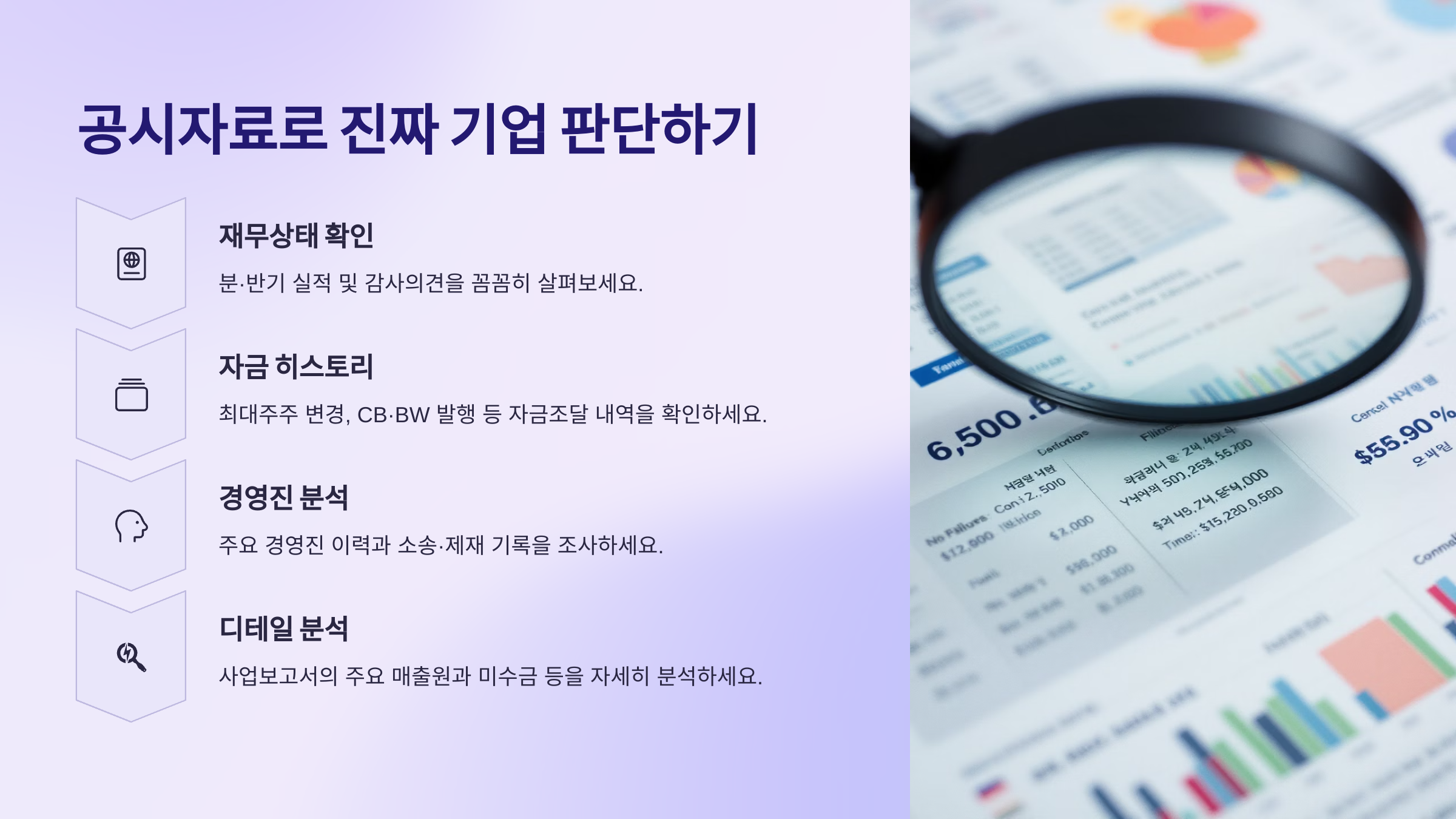 이 외에도 ‘유상증자’, ‘전환사채 발행’ 같은 이슈도 살펴야 해요. 주식을 추가로 발행하거나, 외부 자금을 끌어오려는 경우 작전세력이 이를 미끼로 삼는 경우가 많거든요. 뉴스보다 공시가 먼저예요!