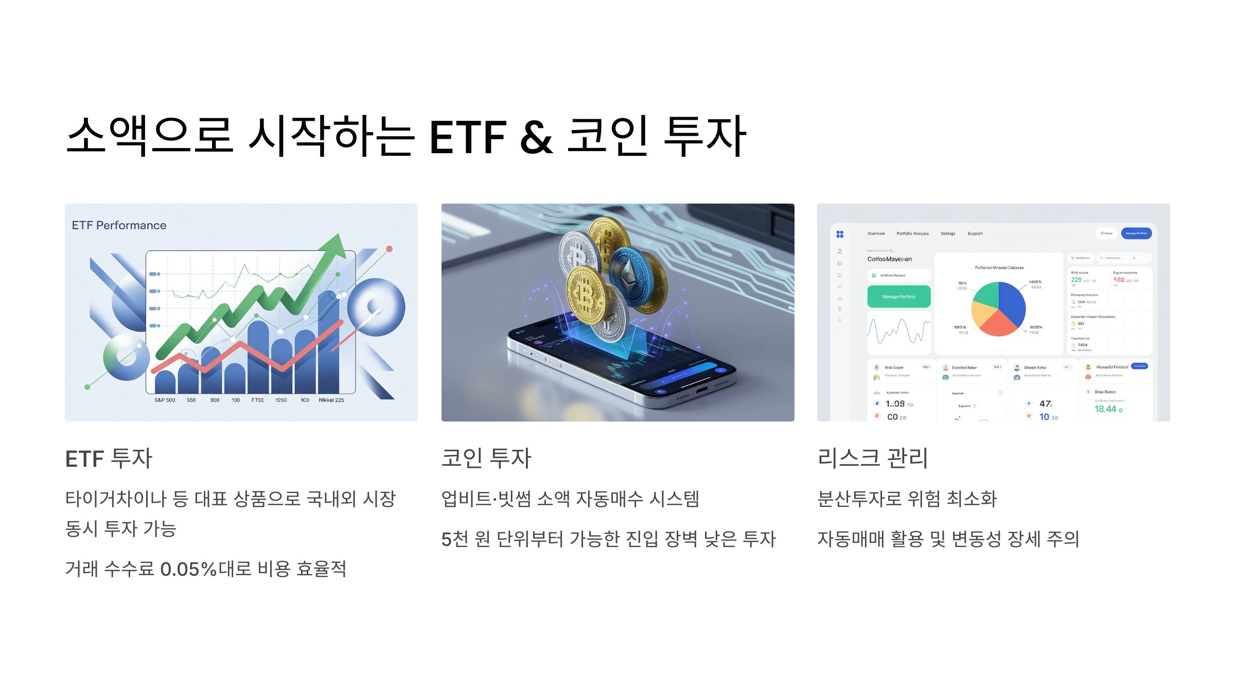 지금부터는 그런 20대가 특히 관심 많은 ‘소액 ETF와 코인 투자’에 대해 살펴볼게요. 🚀