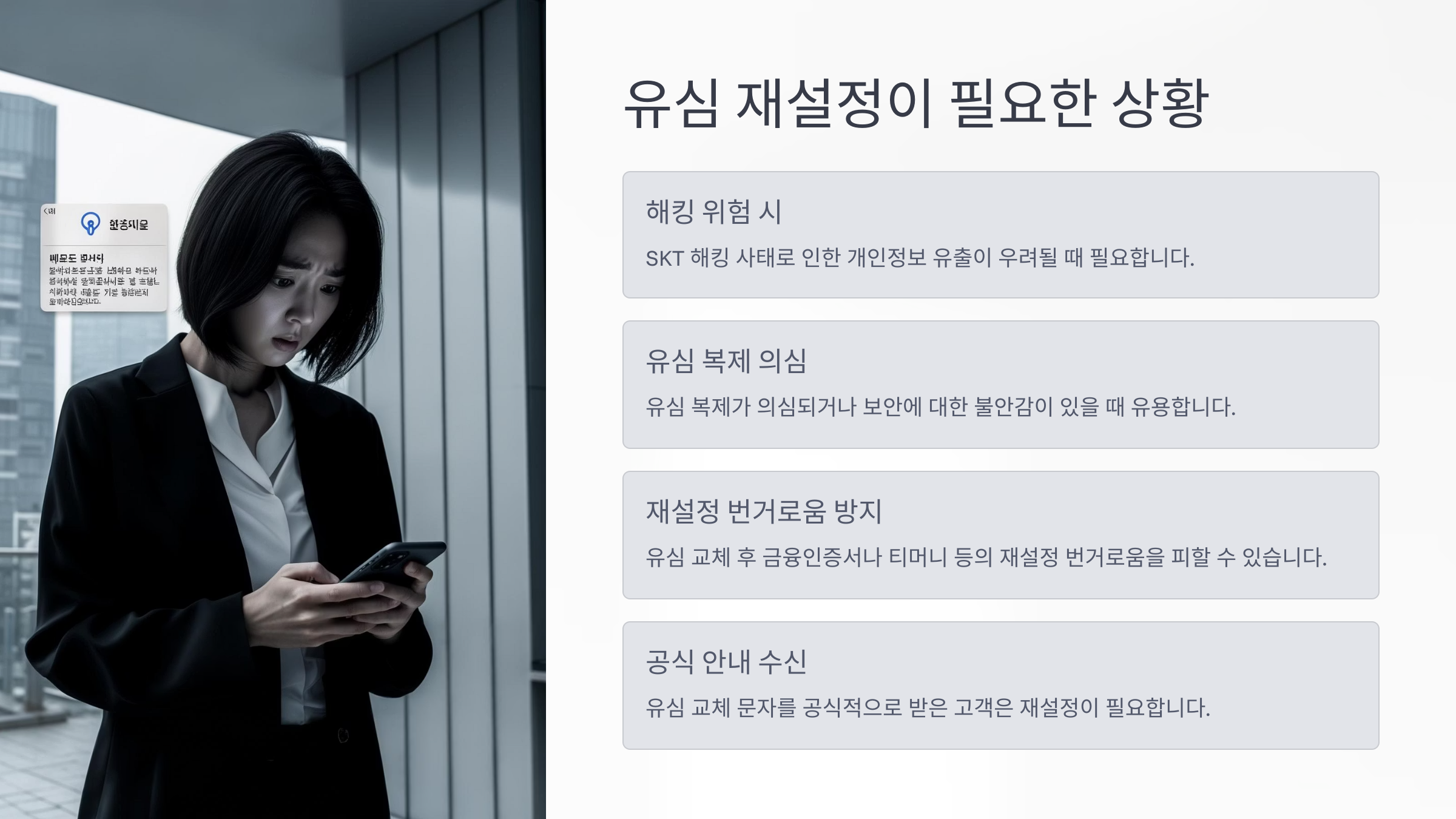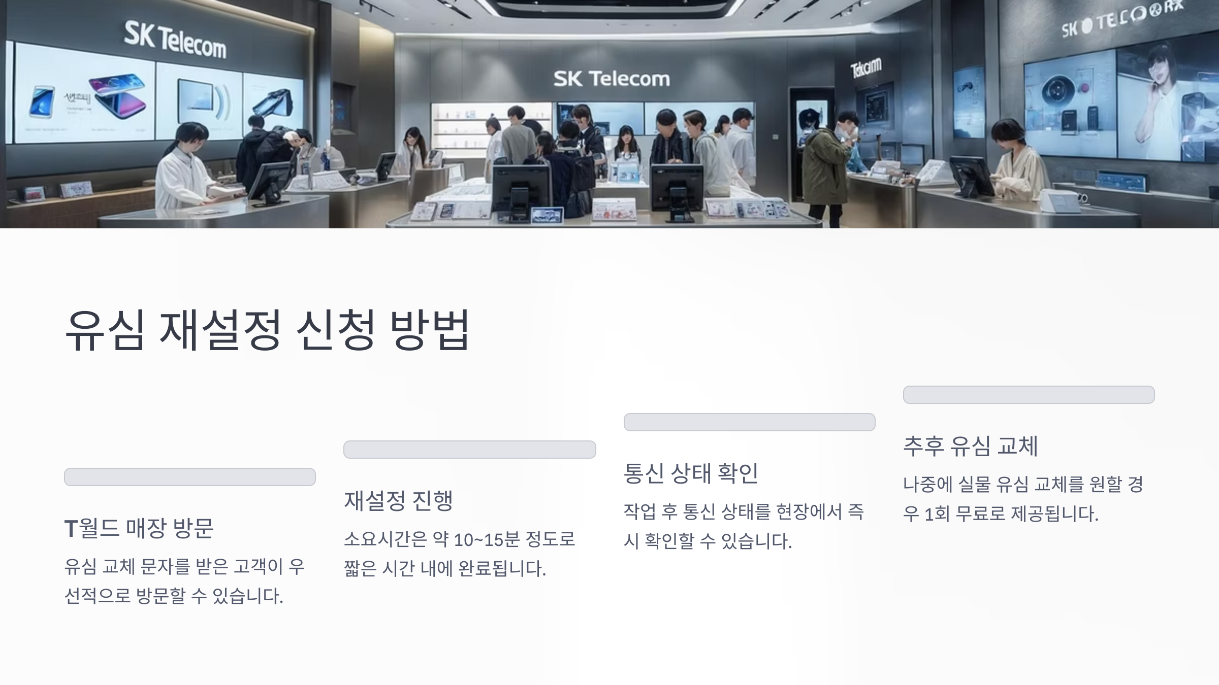 📌 **기기변경 시**에는 반드시 SKT 공식 채널을 통해 유심 재설정을 해줘야 해요. 특히 중고폰을 구매한 경우, 이전 사용자의 정보가 남아있을 수 있으니 꼭 재설정하세요.