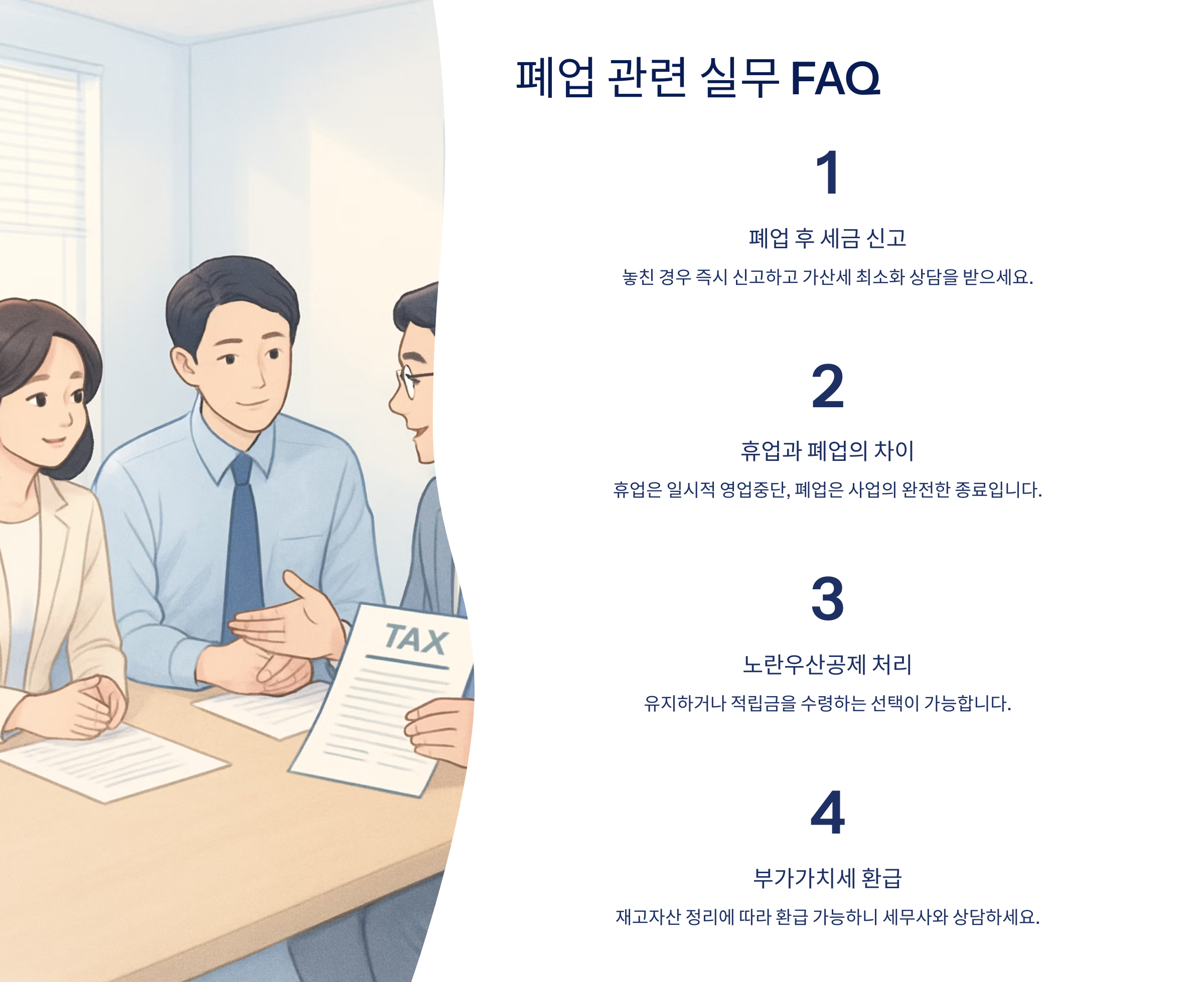 폐업을 결심했다면 그 순간부터는 ‘실무 처리’가 정말 중요해요. 정리를 깔끔히 하지 않으면 세금, 보증금, 법적 문제까지 꼬일 수 있답니다. 그리고 나중에 재창업이나 대출, 복지 수급에도 영향을 줄 수 있어요.