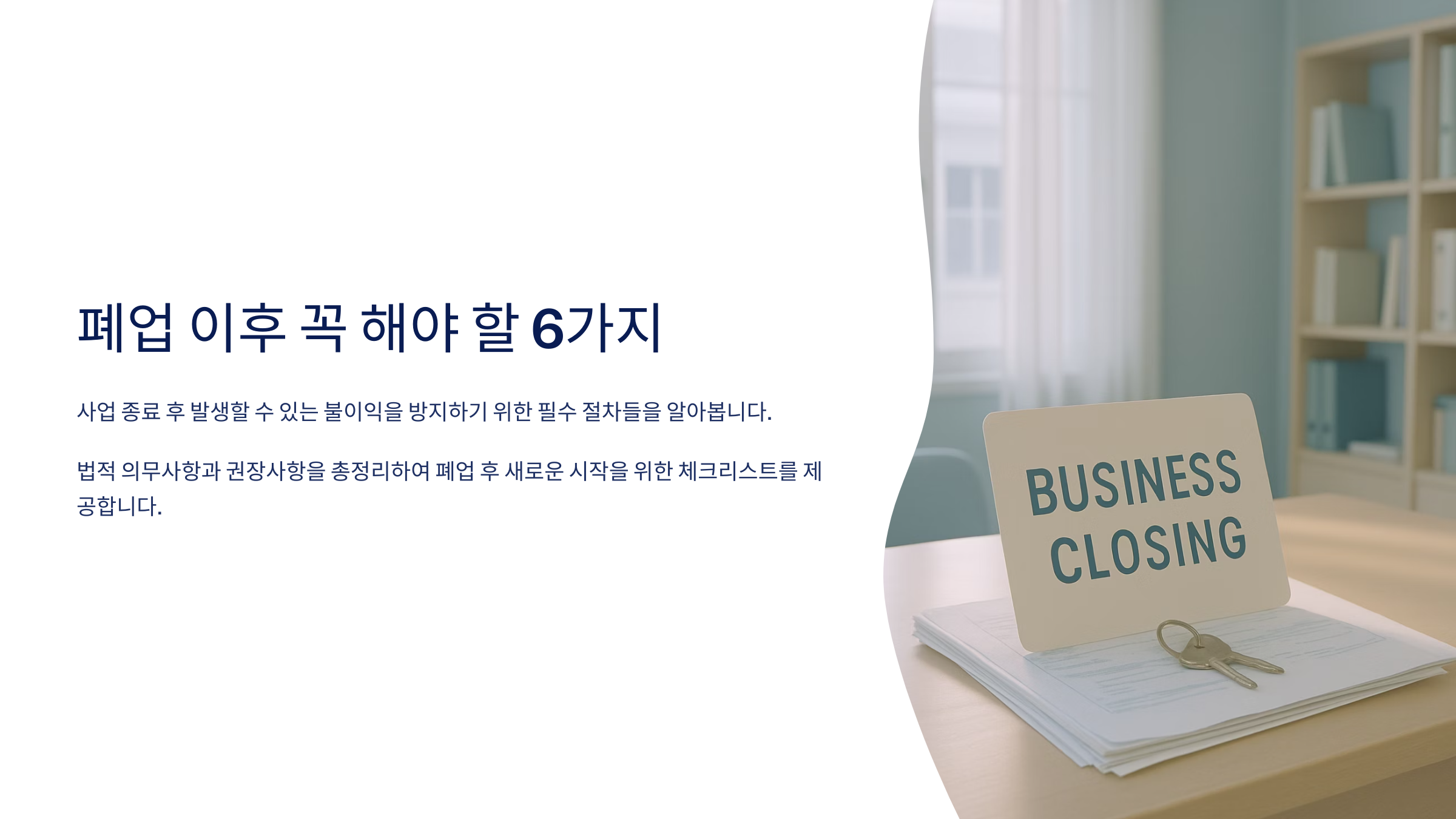 이번 글에서는 폐업 후 반드시 해야 할 6가지를 순서대로 정리해드릴게요. 폐업신고부터 카드 단말기 해지, 정부기관 통보까지 실제로 써먹을 수 있는 실무 중심으로 구성했어요. 2025년 최신 기준이니까 그대로 따라만 해도 문제 없어요 ✅