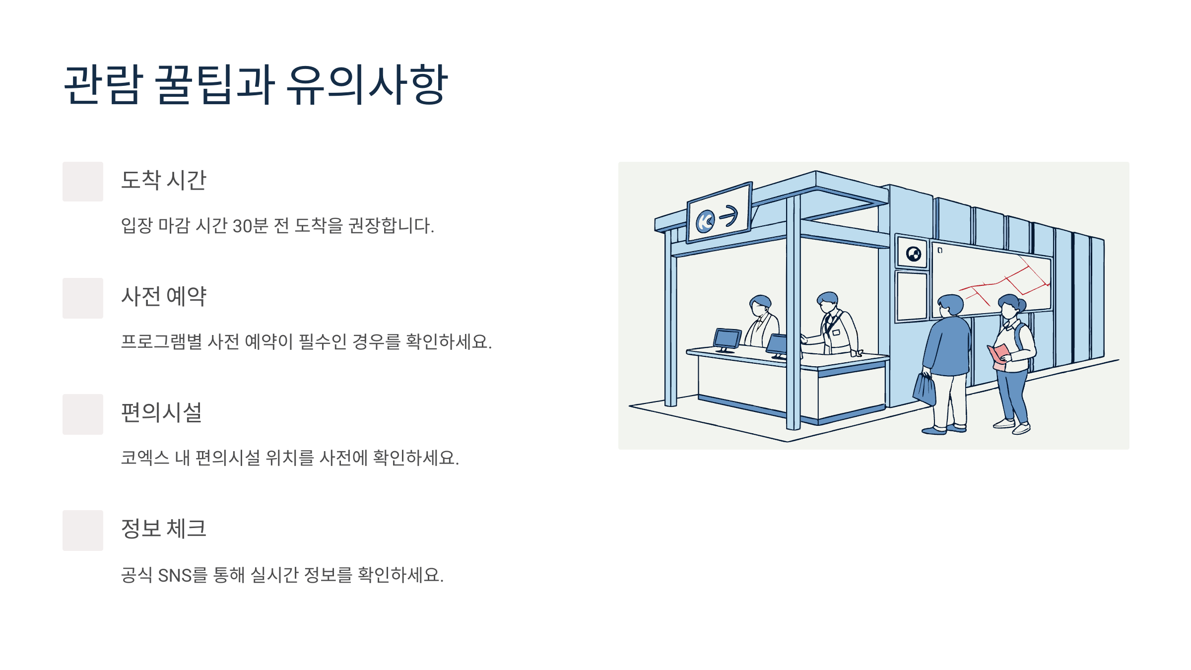 이제 도서전을 200% 즐기기 위한 관람 꿀팁과 주의사항도 알아봐야겠죠? 그럼 바로 다음 섹션으로 넘어가요! 😉