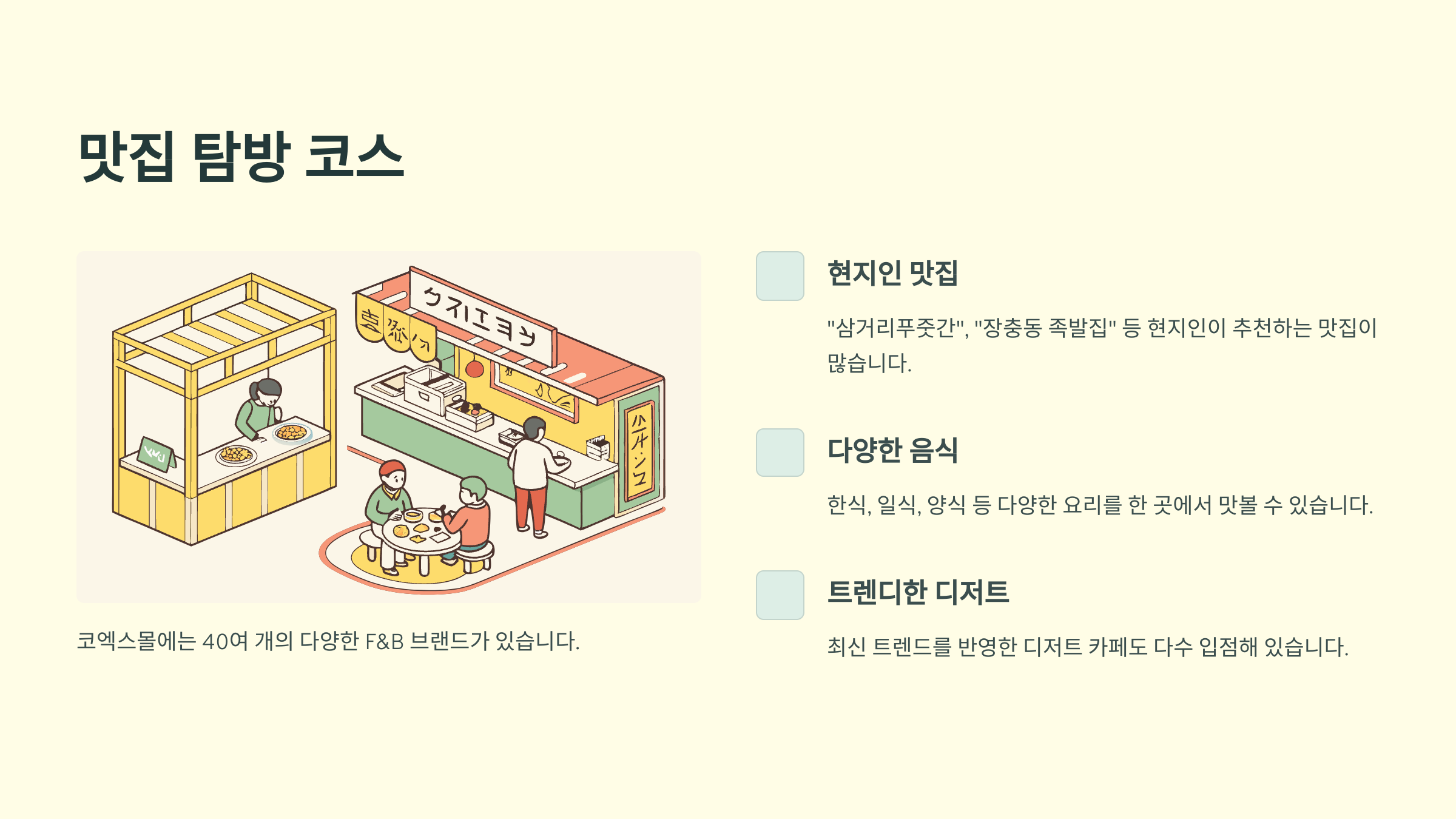 | 매장명 | 음식종류 | 특징 |