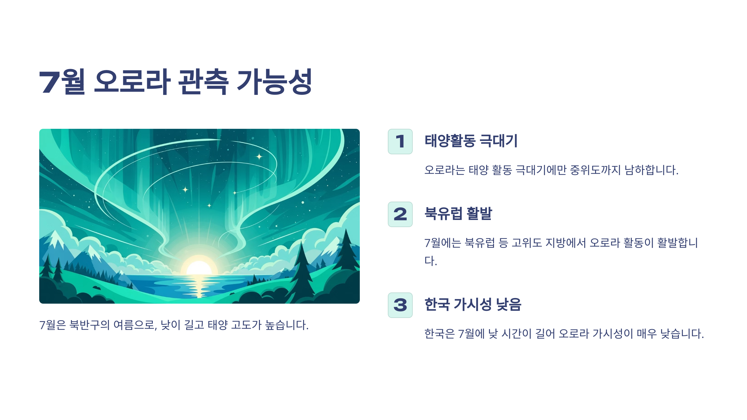 🌐 7월 한국 오로라 관측 가능성 요약표
