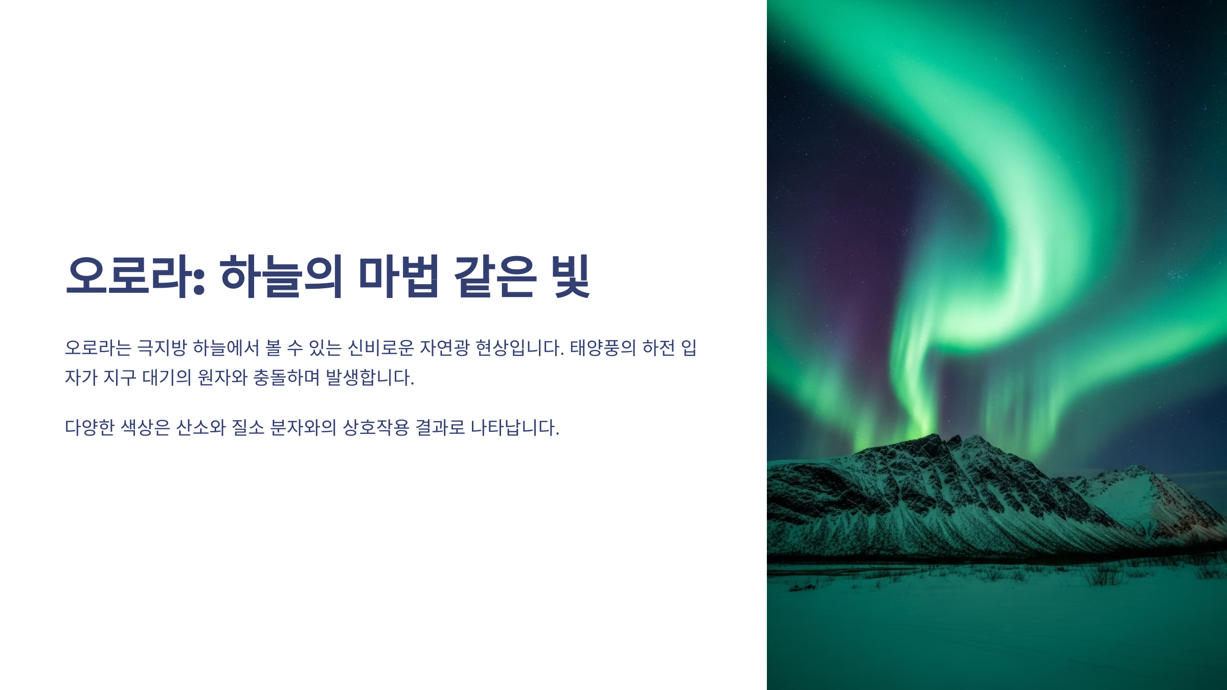 이처럼 오로라는 단순히 색이 아름다운 것이 아니라, 과학과 자연의 경이로움이 어우러진 현상이에요. 알고 보면 볼수록 더 매력적인 이 빛의 춤은 지구가 우리에게 주는 선물 같아요.✨
