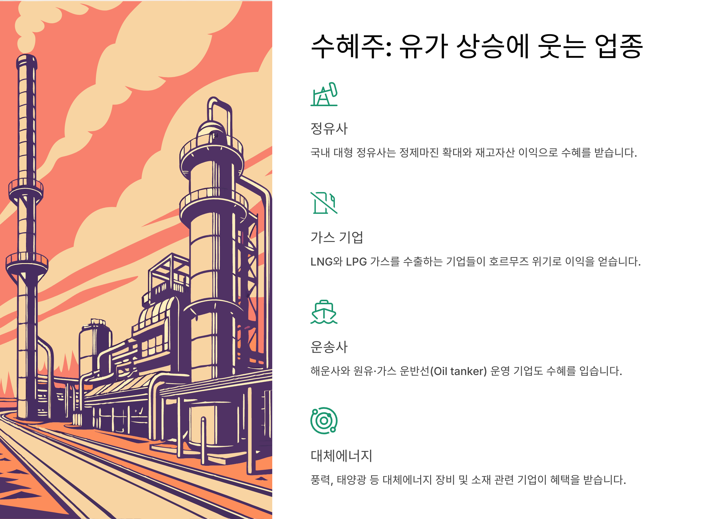 📈 수혜주: 유가 상승에 웃는 업종